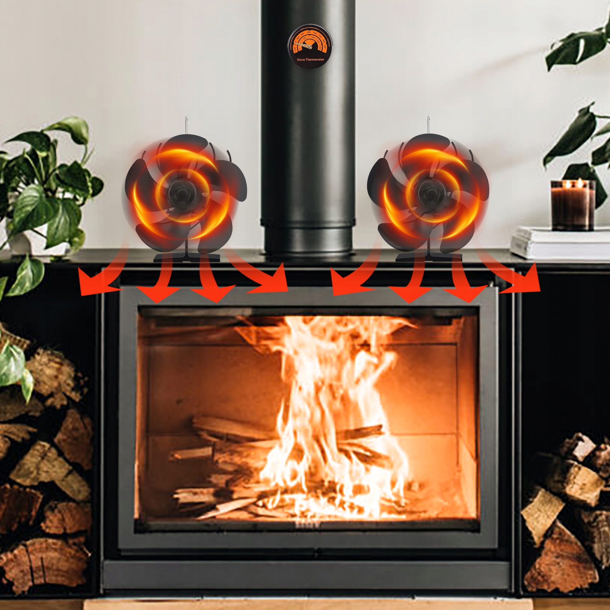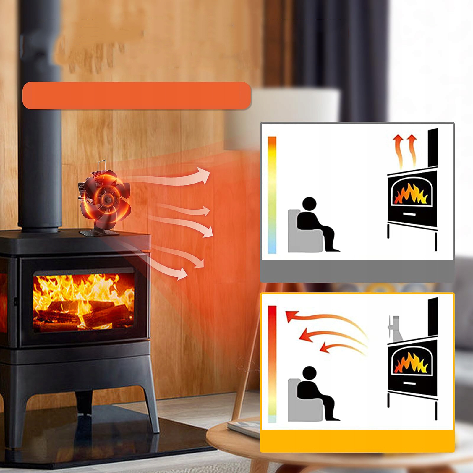 Основание и лезвия этого вентилятора камина сделаны из анодированного алюминия, устойчивого к ржавчине, устойчивые к износу, с хорошей теплопроводности. Вентилятор печи способен работать без деформации и без обесцвечивания даже после долгого времени при высокой температуре.