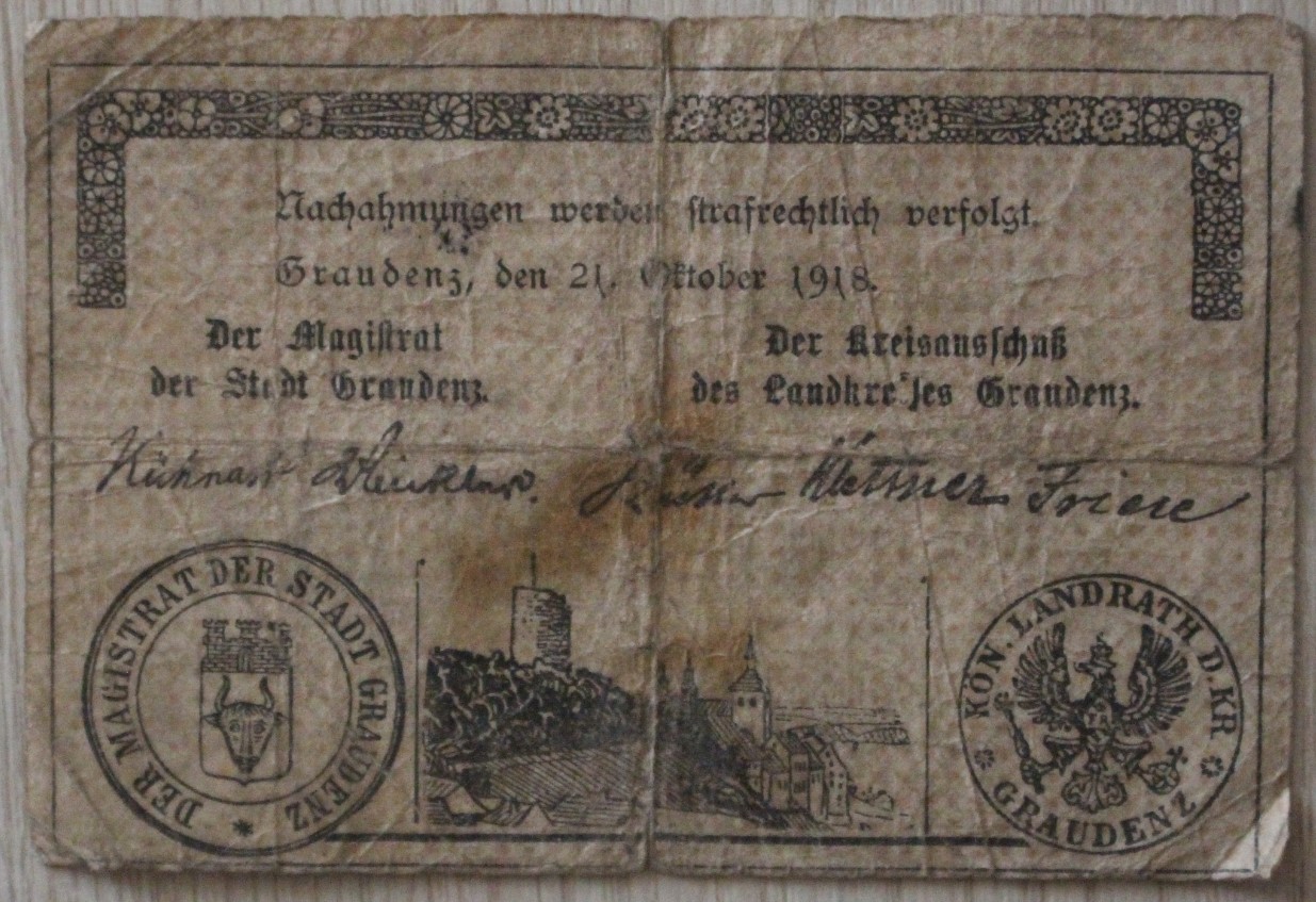 5 Marek 1918 Graudenz - Grudziądz - Редкость, уникальная