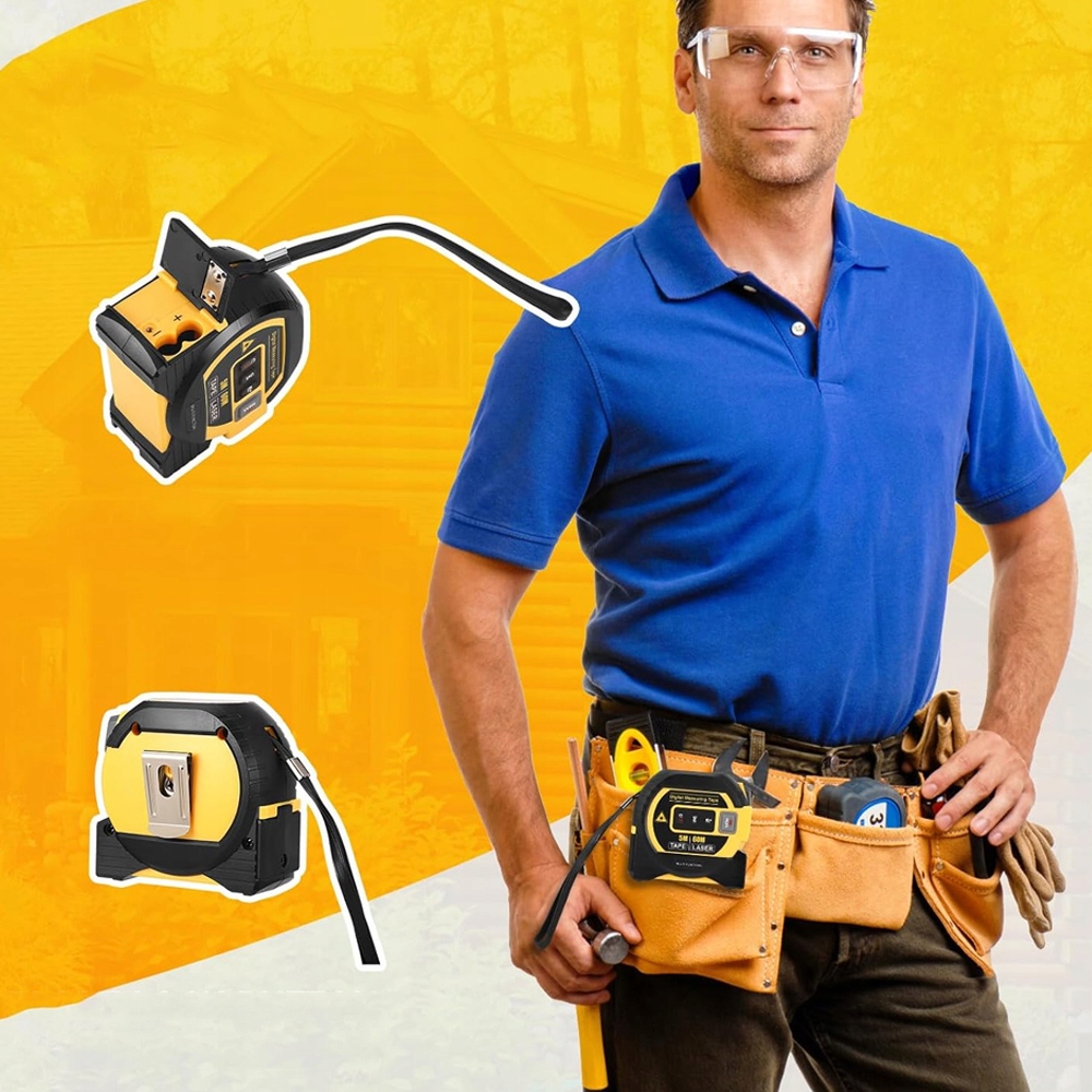 Цифровой лазерный дальномер с конструкцией «три в одном»: лазерный луч, 5-метровая рулетка и лазерная разметка крестом — все в одном. Этот инструмент предлагает множество функций измерения, включая однократное/непрерывное измерение, измерение площади, измерение объема и измерение Пифагора.