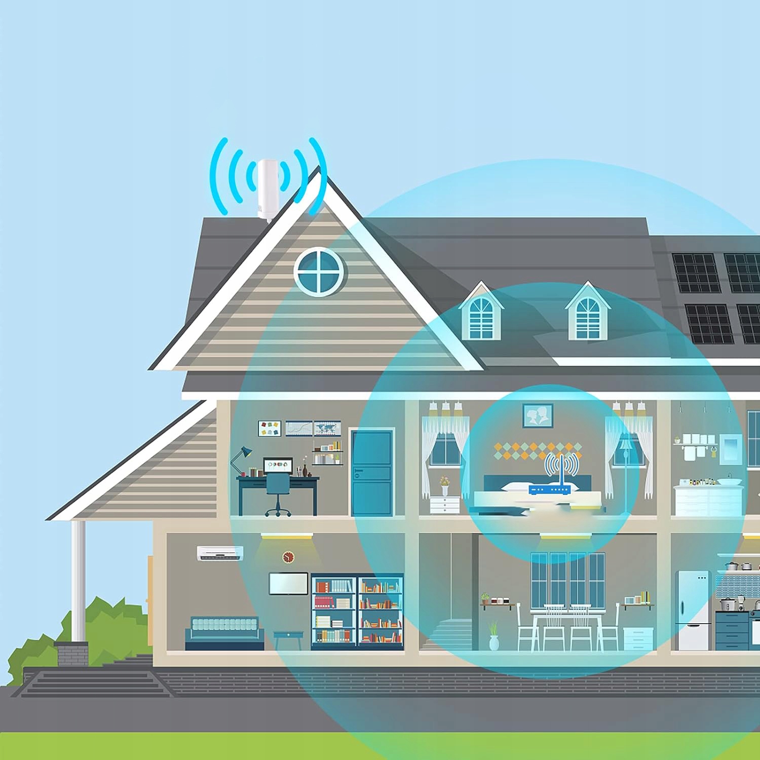 -Водонепроницаемый дизайн, может быть установлен на балконах и крышах.