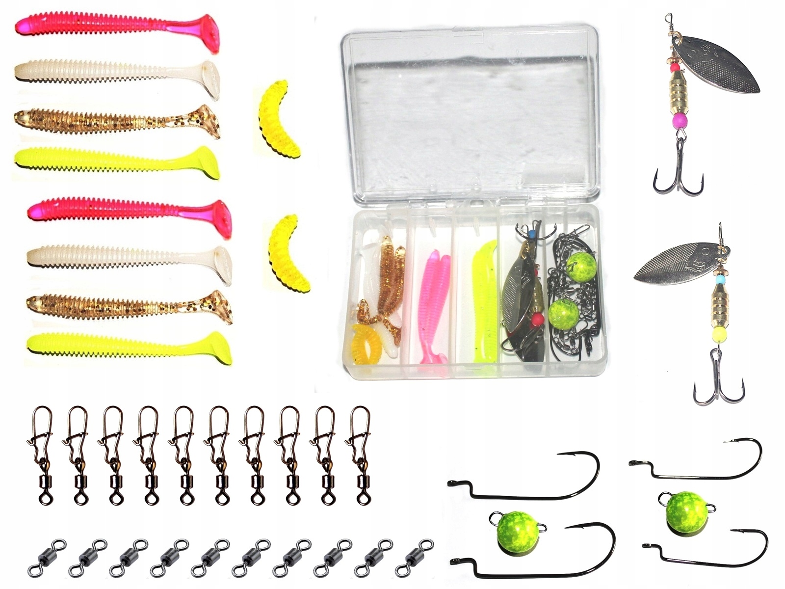 8 ШТУК ДЕЗИН DROP SHOT - 6,5см. , ДВЕ ЖЕЛТЫЕ ЛИЧИНКИ - 2см. , ДВА РОТОРНЫХ вертушки
