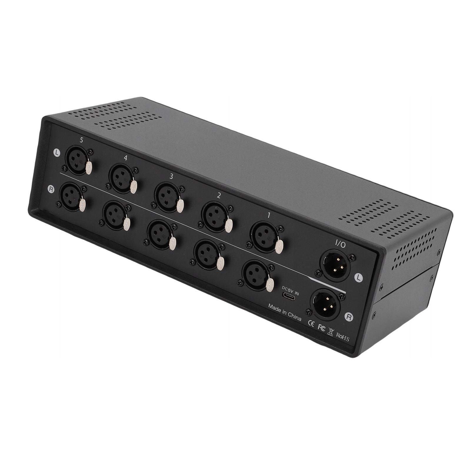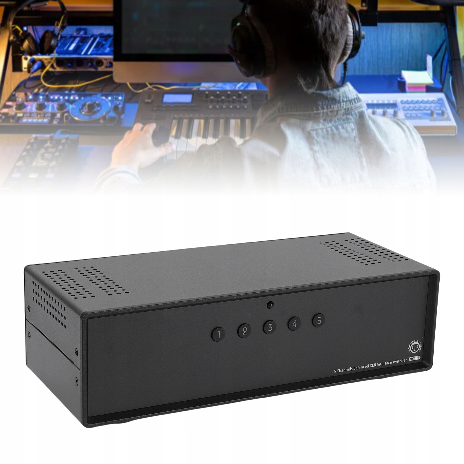 1. 5-портовый переключатель XLR: балансный переключатель XLR позволяет плавно переключаться между 5 входами XLR на 1 выход, устраняя необходимость постоянной замены кабелей и обеспечивая стабильное соединение для непрерывного воспроизведения звука.