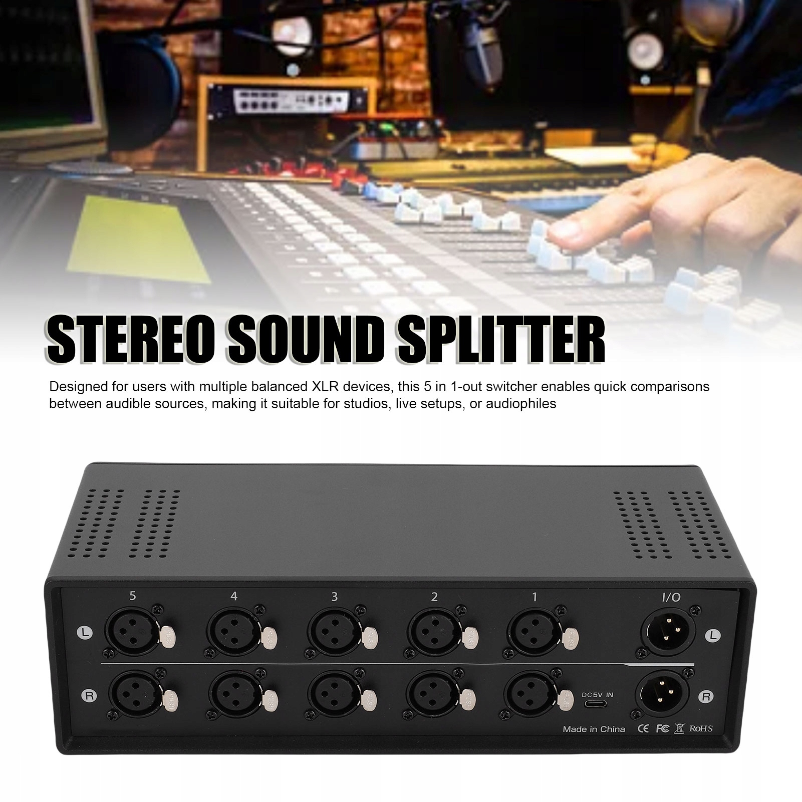 2. Универсальные возможности подключения: этот коммутатор 5-в-1, предназначенный для пользователей с несколькими балансными XLR-устройствами, позволяет быстро сравнивать источники звука, что делает его подходящим для студий, живых выступлений или аудиофилов
