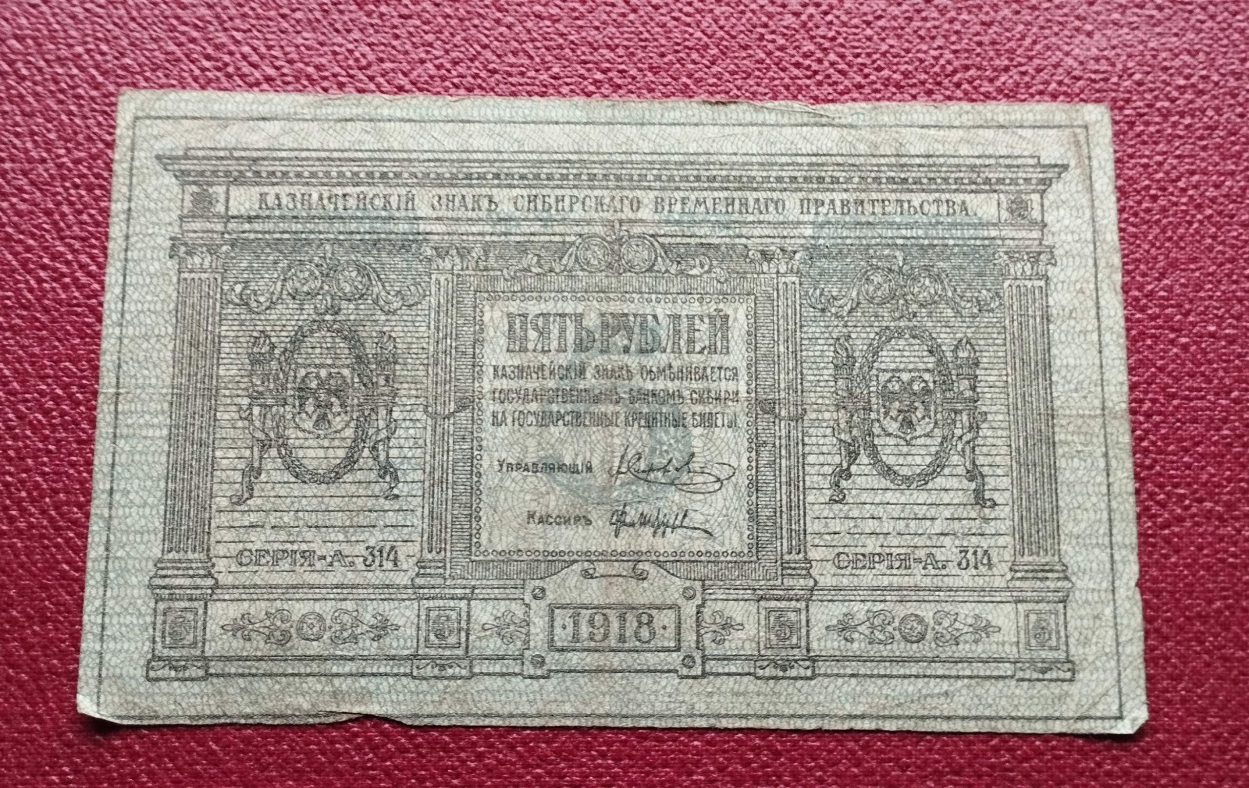 5 РУБЛЕЙ СИБИРЬ РОССИЯ 1918 ГОДА
