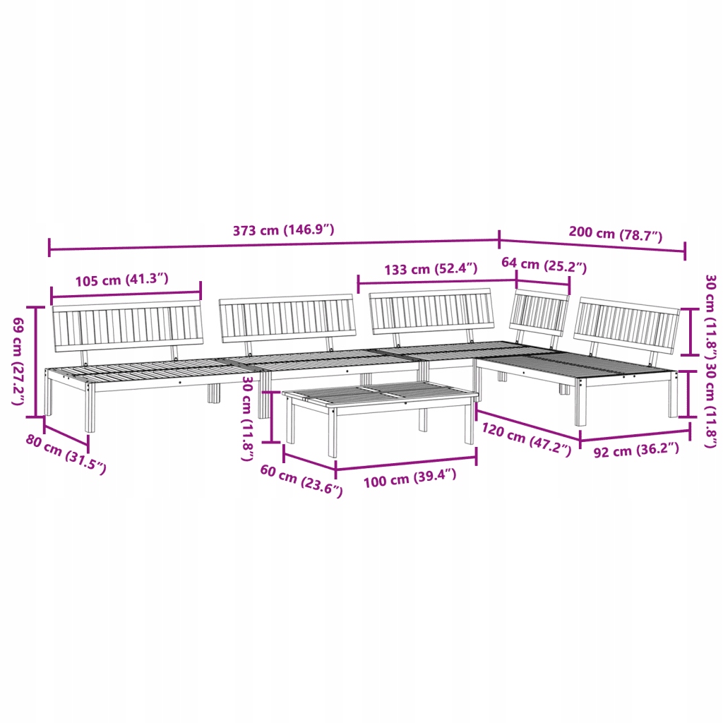 - Seat dimensions: 120 x 80 cm (width x) < Seats above the ground: 30 cm