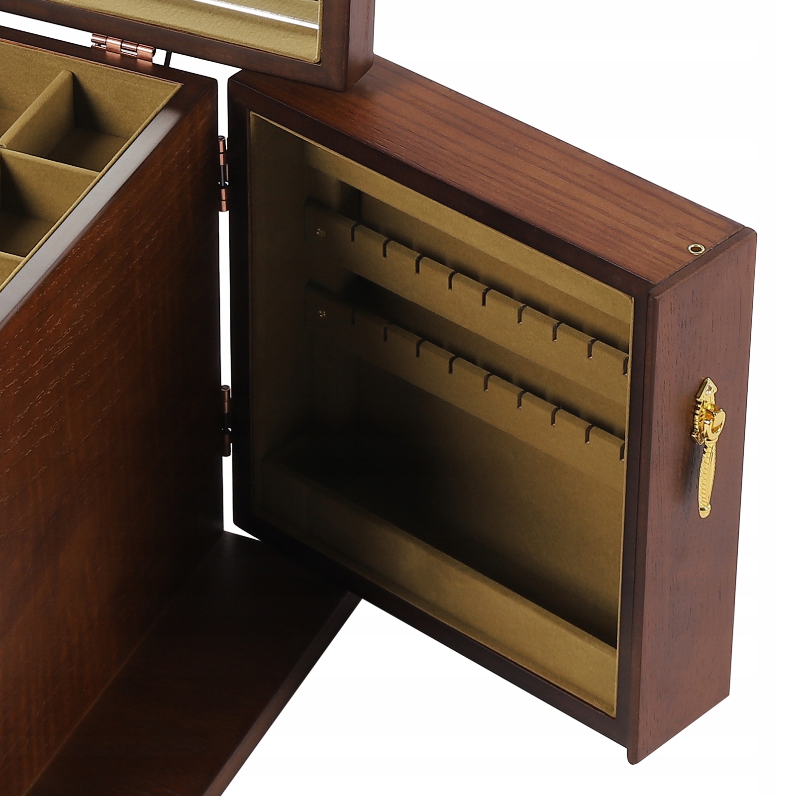 - Прочные петли: Цельнометаллические петли обеспечивают устойчивую поддержку и гибкое управление шкатулки для драгоценностей.