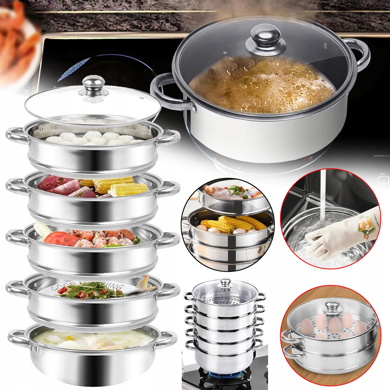 5-слойный паровой горшок с прозрачной стеклянной крышкой для дома
