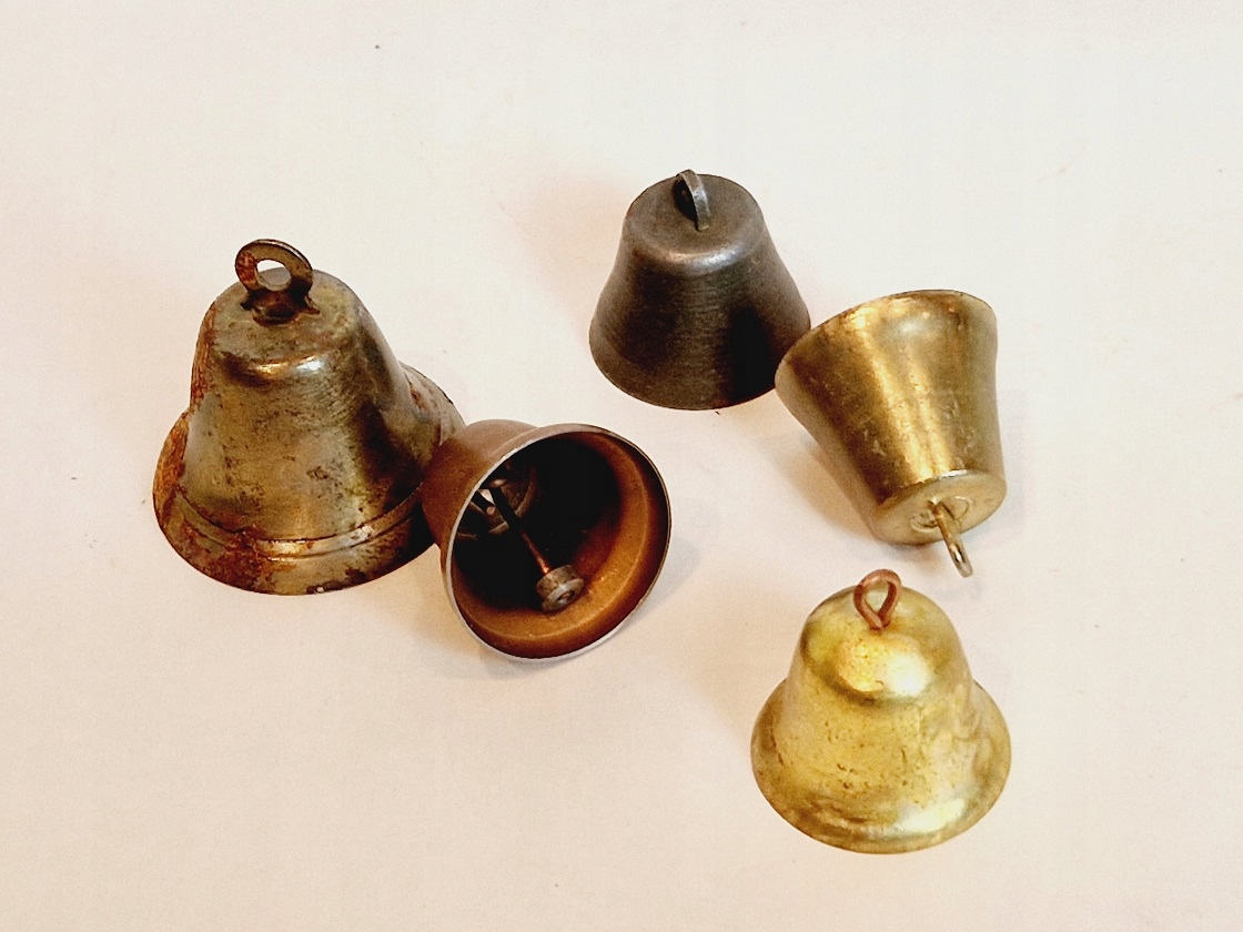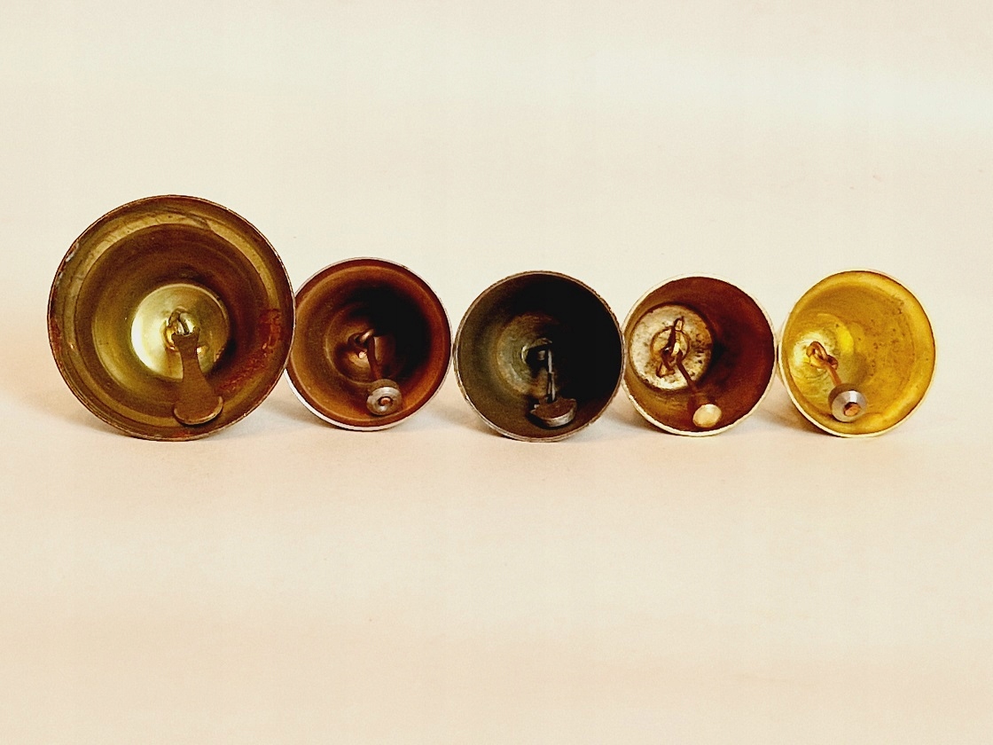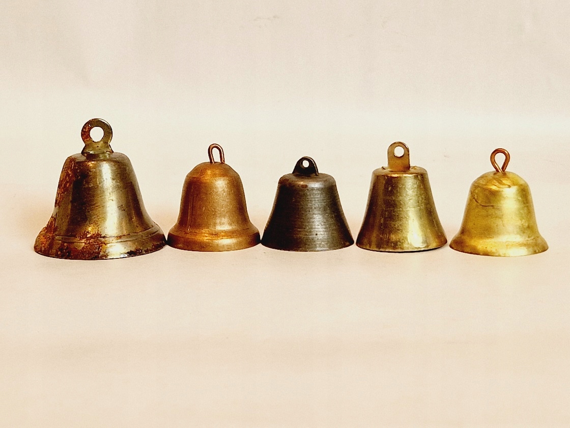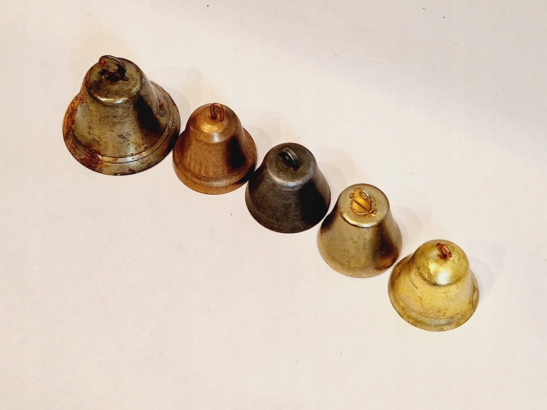 5 шт. / СТАРІ ЯНІШСЬКІ ДЗВОНИЧКИ - СТАЛЬ, ЛАТУНЬ, ЛАТУННЕ ПОКРИВАННЯ /2610