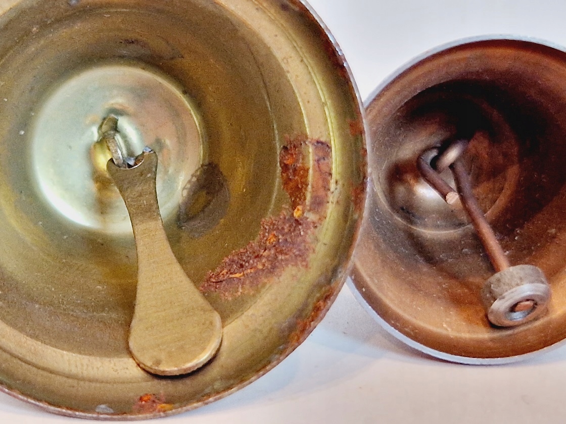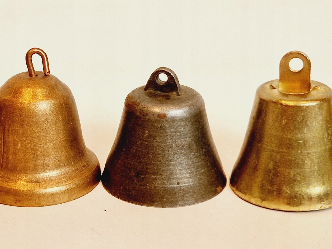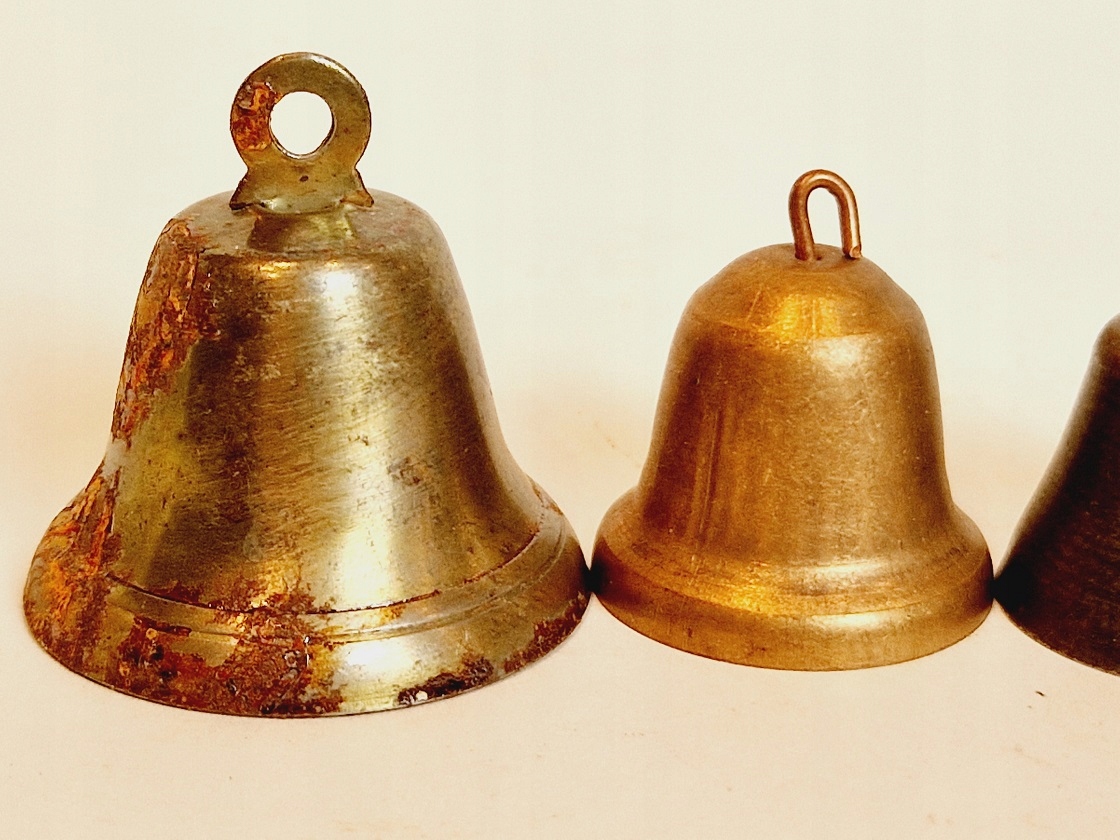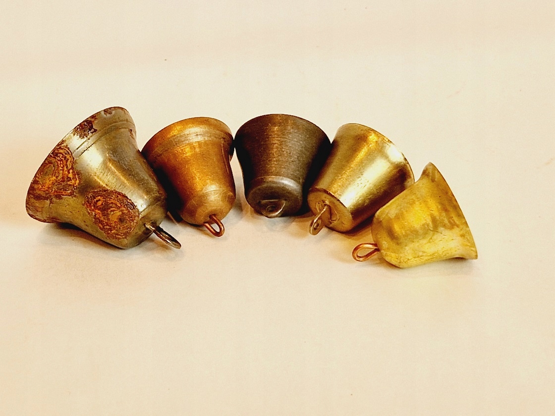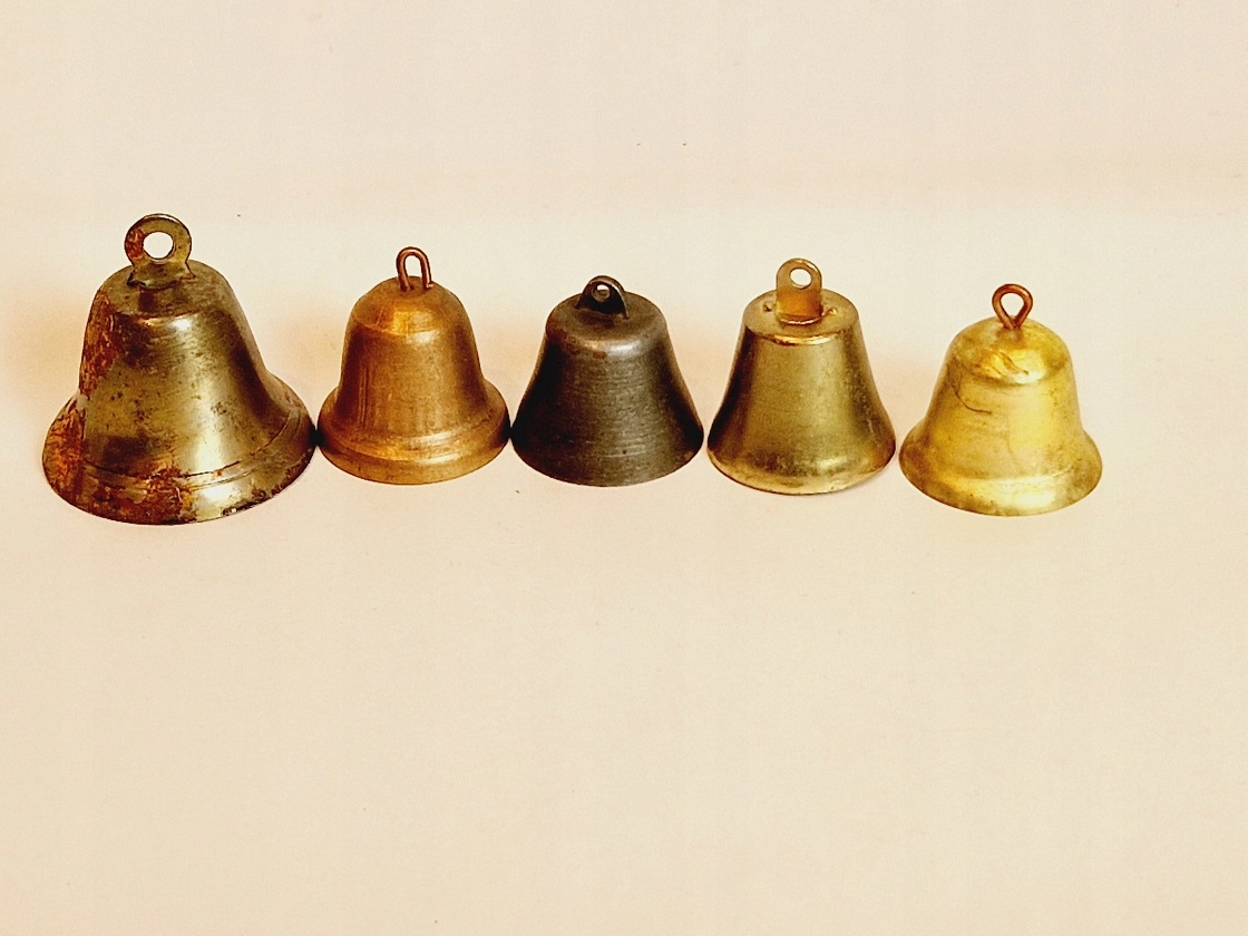 5 шт. / СТАРІ ЯНІШСЬКІ ДЗВОНИЧКИ - СТАЛЬ, ЛАТУНЬ, ЛАТУННЕ ПОКРИВАННЯ /2610