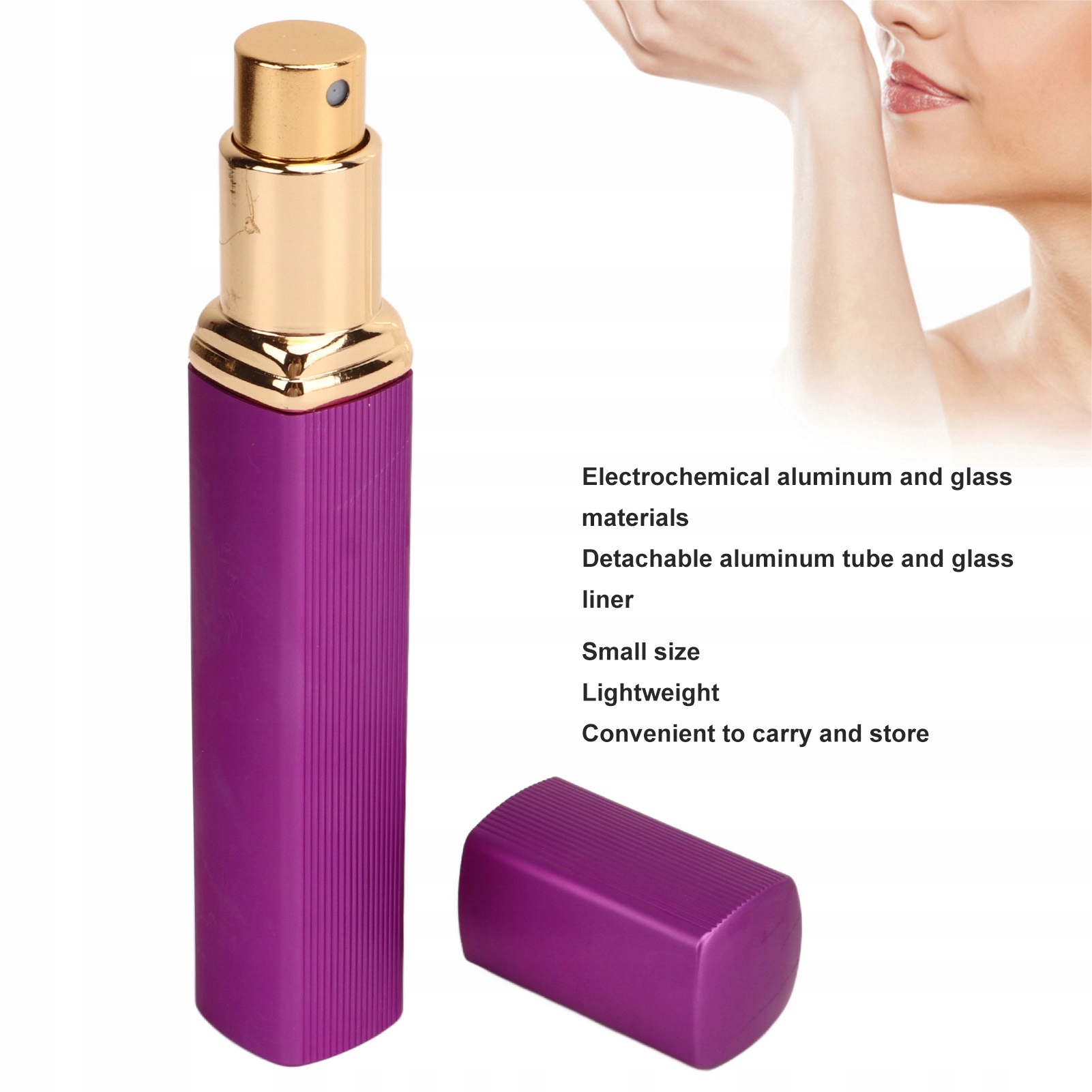 1. Прочный материал: распылитель духов изготовлен из электролитического алюминия и стекла, он прочен, не повреждается и может использоваться пользователями в течение длительного времени.