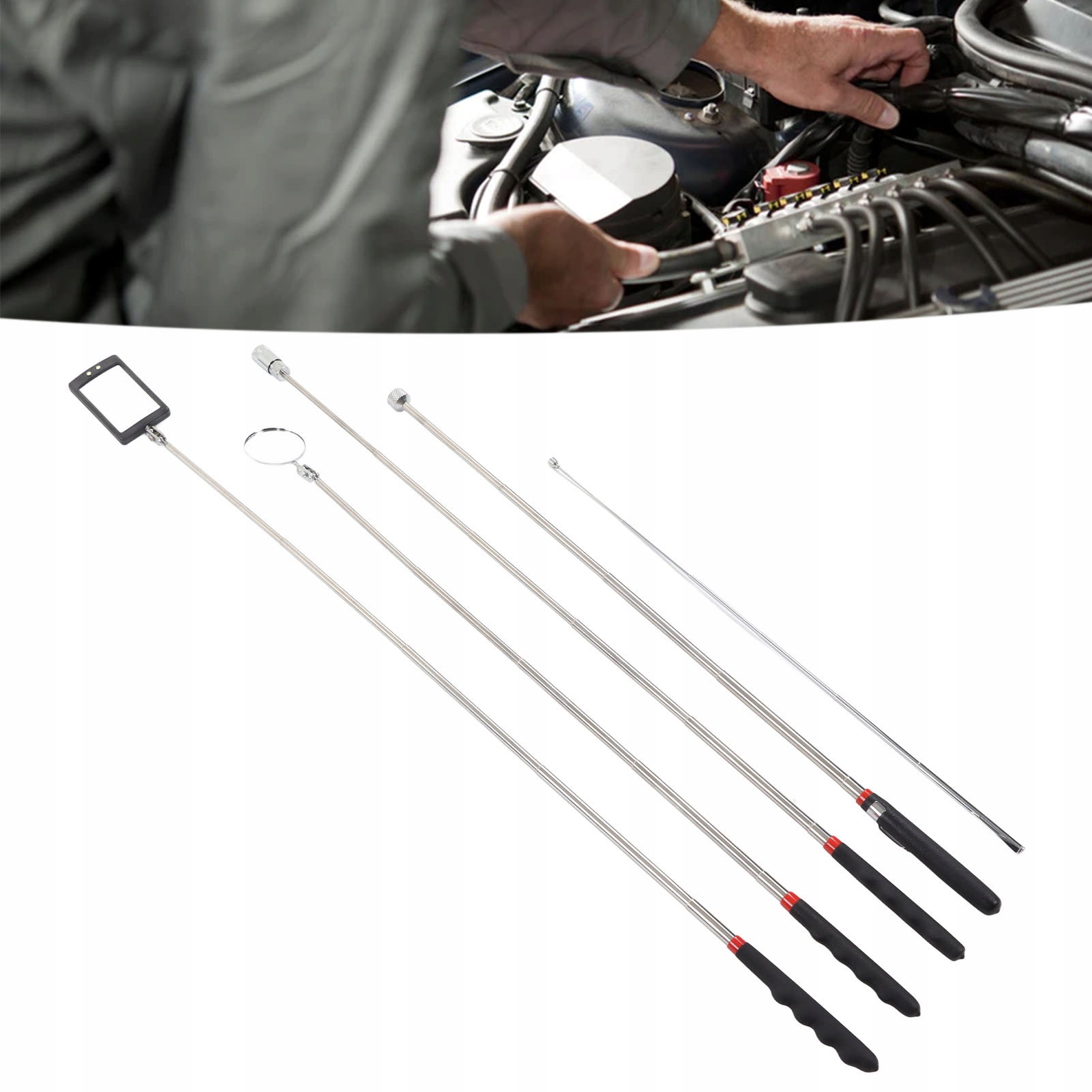 3. Оборудован светодиодным миром: 8 фунтов магнитного стержня преобразователя и квадратное осмотр зеркала, оснащенное супер ярким светодиодным миром для поиска.