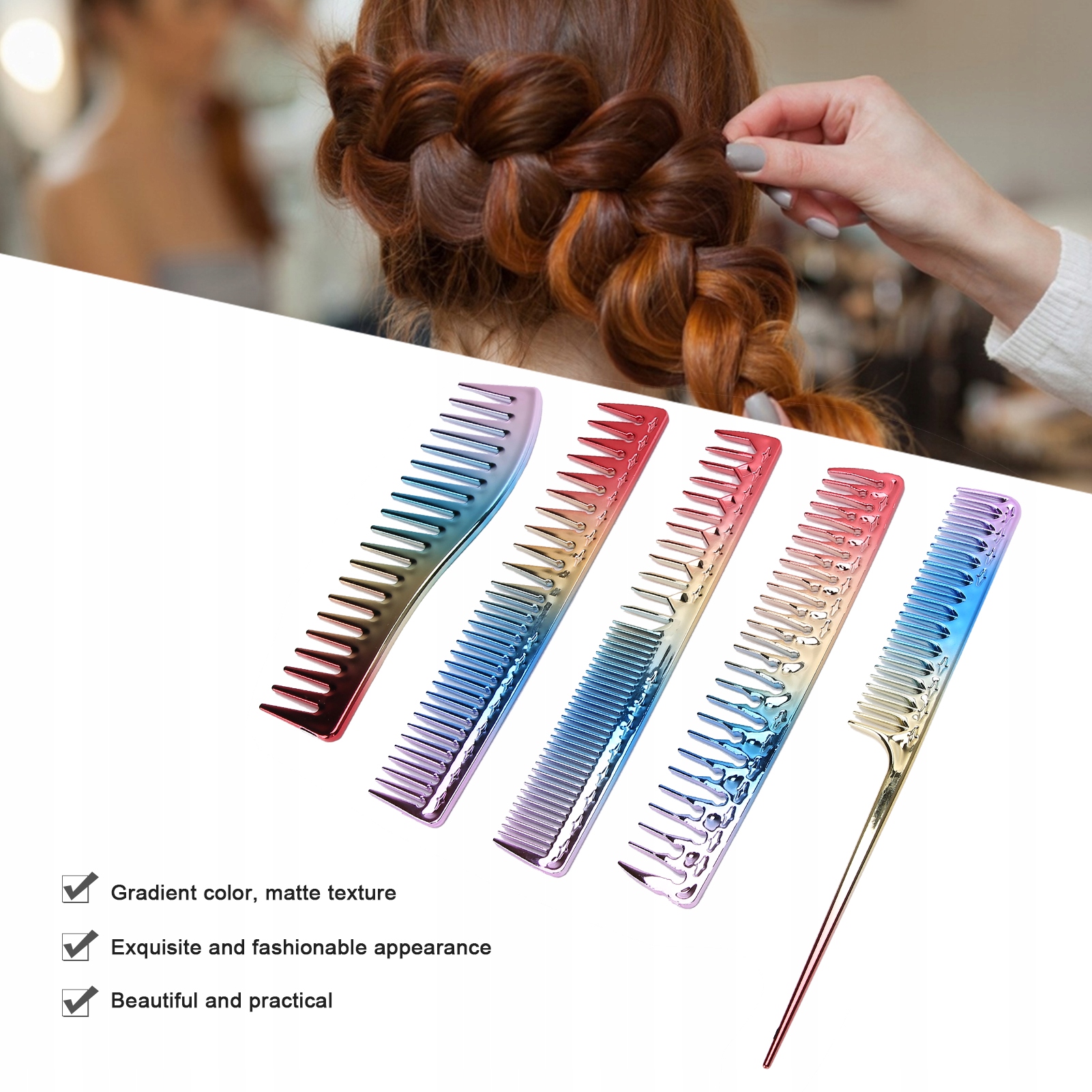 5 шт. Алюминиевое пространство красочная градиентная расческа для парикмахерской для парикмахерской для расчесывания парикмахерских для стиля