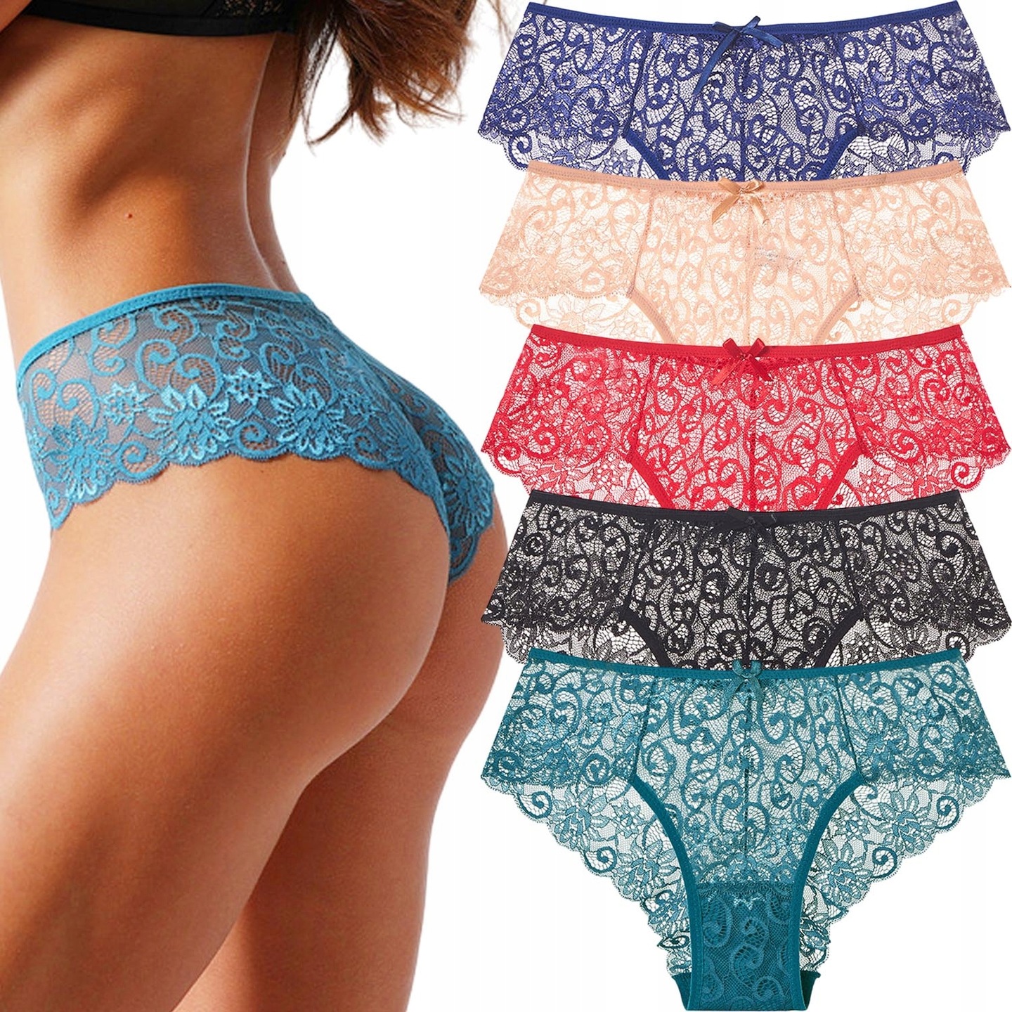 КОМПЛЕКТ ЖЕНСКИХ КРУЖЕВНЫХ СЕКСУАЛЬНЫХ ТРУСИКО ORIGINAL VELONI - S, 5 шт.