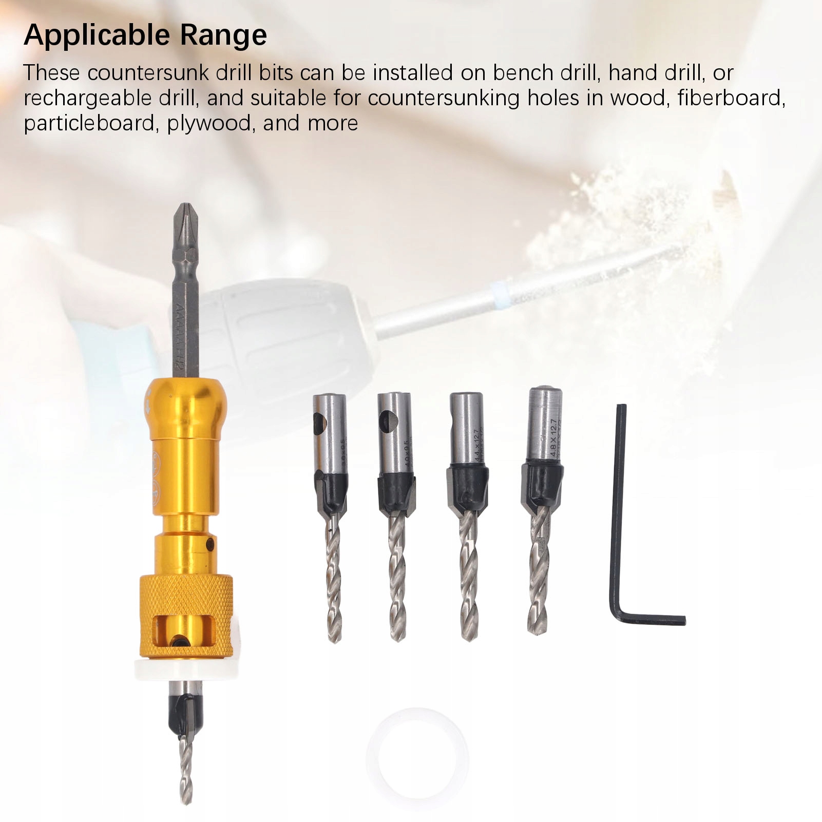 1. Технические данные: Этот набор содержит 5 соблюдающих упражнений с коническим BEM с размером 3/16x1/2 дюйма, 1/8x3/8in, 11/64x1/2 дюйма, 5/32x3/8in, 9/64x3/8in; С отверстием утопленным под углом 82 градусов, подходящего для бурения в древесине