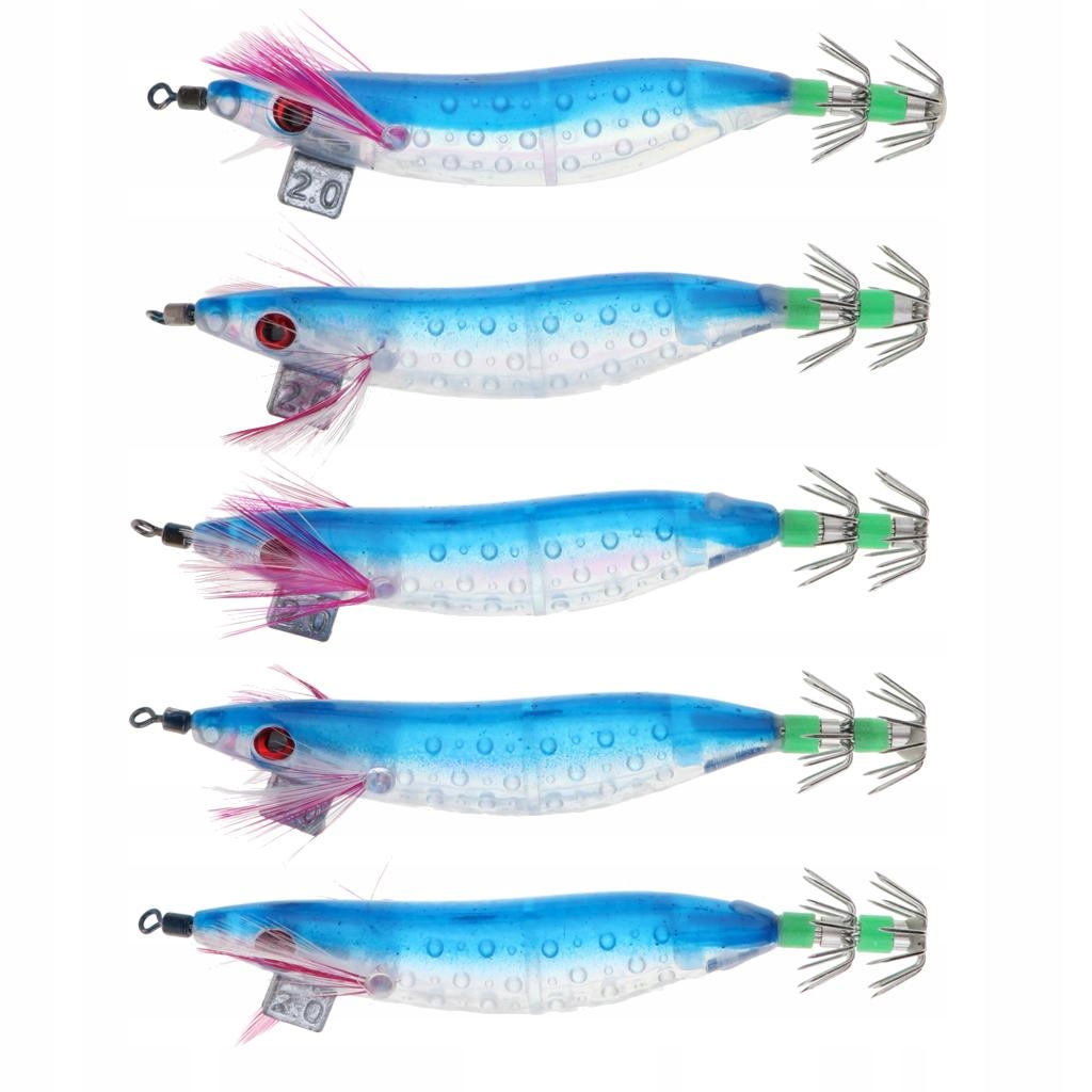 5 шт. светящиеся приманки в виде кальмара, приманки для морской рыбалки, крючки для осьминога, кальмара, синие