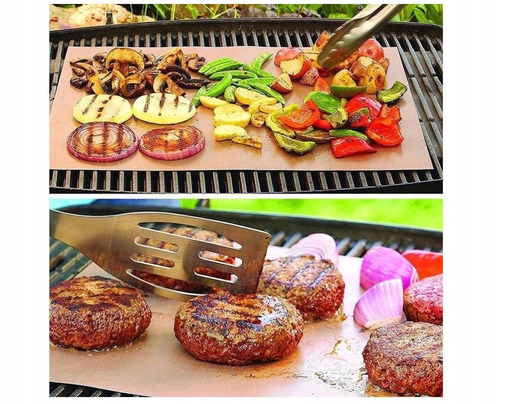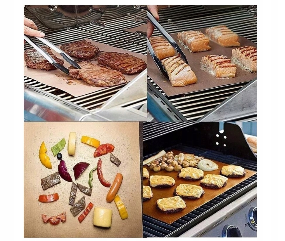 Завершите алюминиевую фольгу! Лучший вкус и более здоровое питание. Безопасная приготовление, потому что коврики не -токсичны и не содержат ПФОА. Нет необходимости в повторном использовании масла или жира, эти коврики облегчают приготовление блюд, таких как яйца, тонко нарезанные овощи, рыба, креветки, пицца и блины на гриле. Джиллер сочные стейки и вытащите самую нежную курицу. Добавьте соусы или маринады, не капая и не прилипая к грилю.