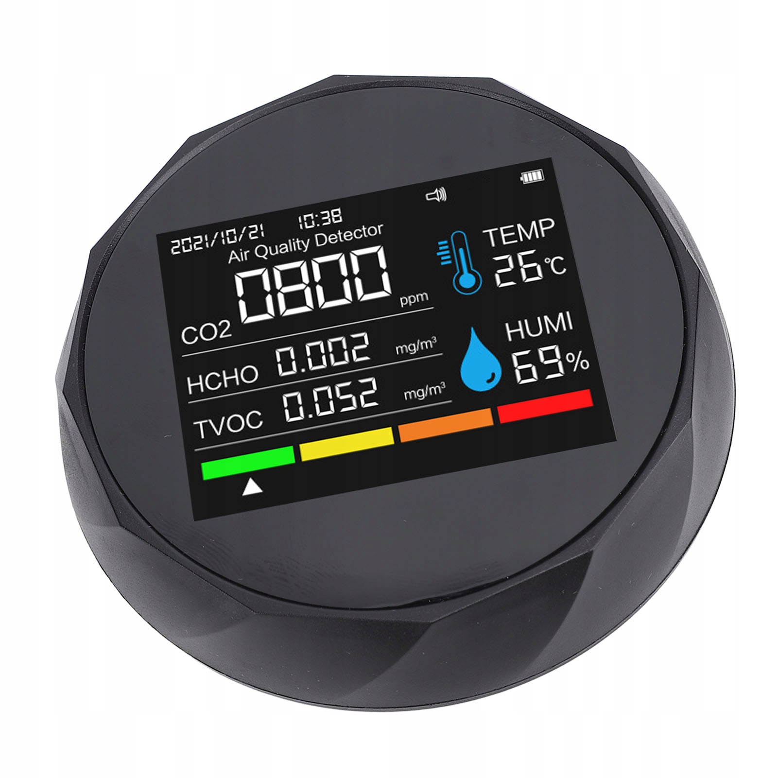 5. Ежедневная запись качества воздуха: устройство автоматически записывает ежедневные данные, помогая пользователям захватывать долгосрочные тенденции качества воздуха. Это обеспечивает своевременное выявление потенциальных проблем, обеспечивая научную основу для улучшения жизненной среды.