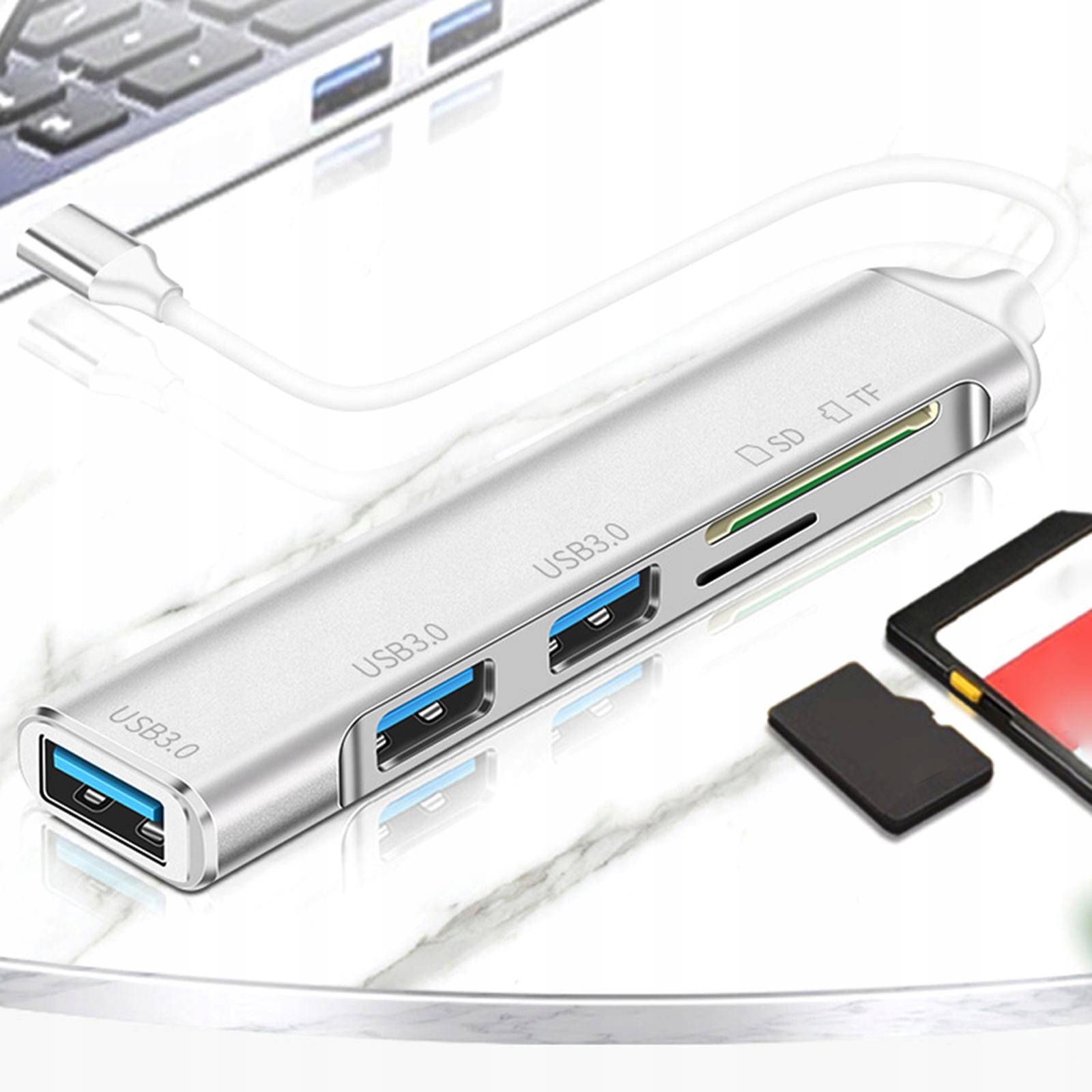 5 в 1 USB 3.0 адаптер-концентратор SD TF Card Reader зручний компактний сріблястий