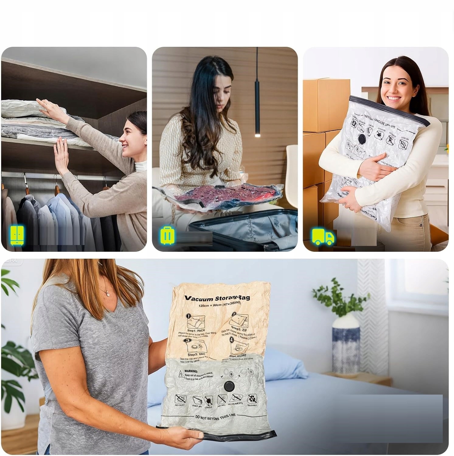 - Вакуумные пакеты идеально подходят для хранения сезонной одежды, а также во время путешествий или переездов — они помогут упаковать больше и сохранить вещи в порядке.