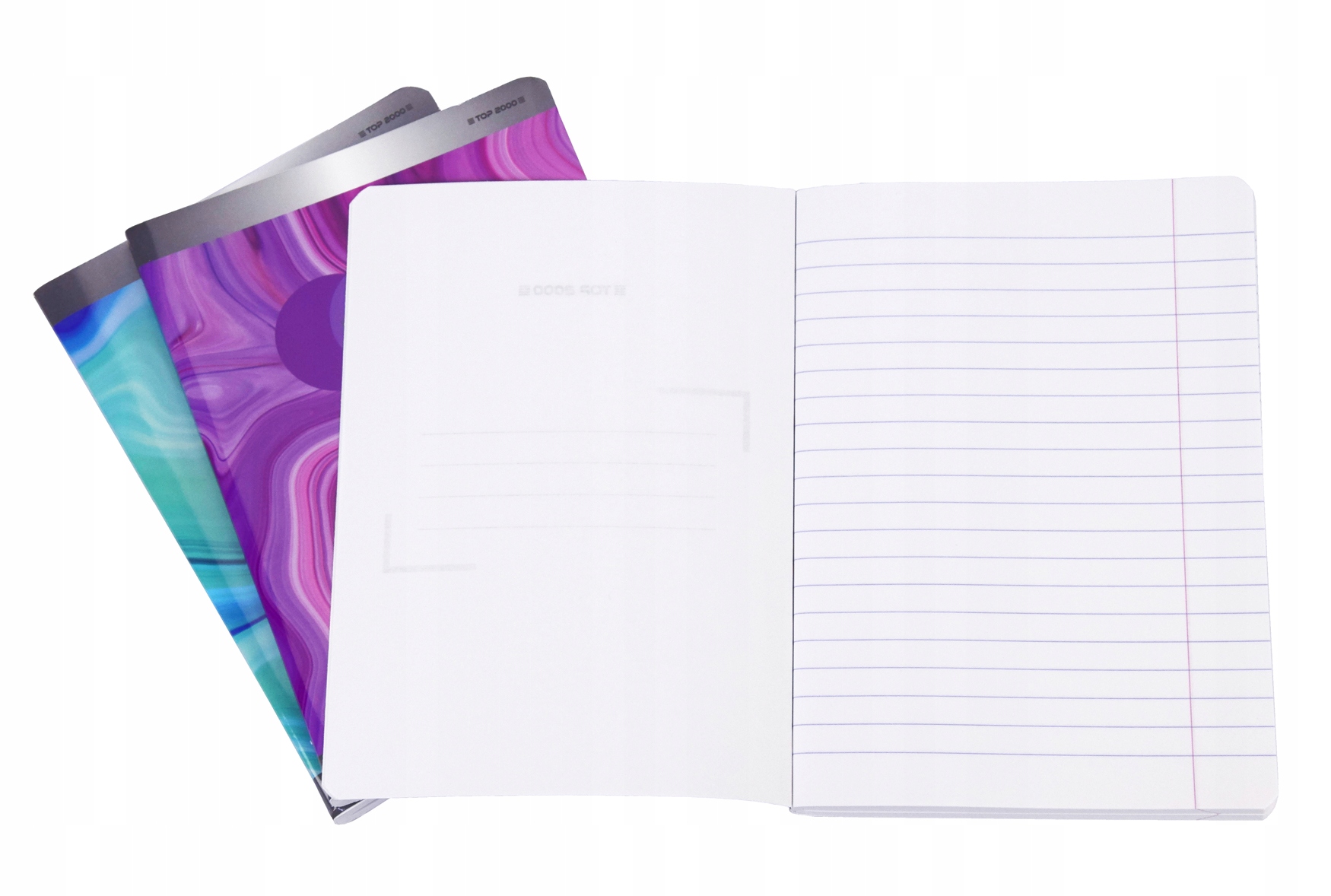 Каждый блокнот формата А5, имеет 80 разлинованных страниц с полями и мягкую обложку с красочным абстрактным рисунком.