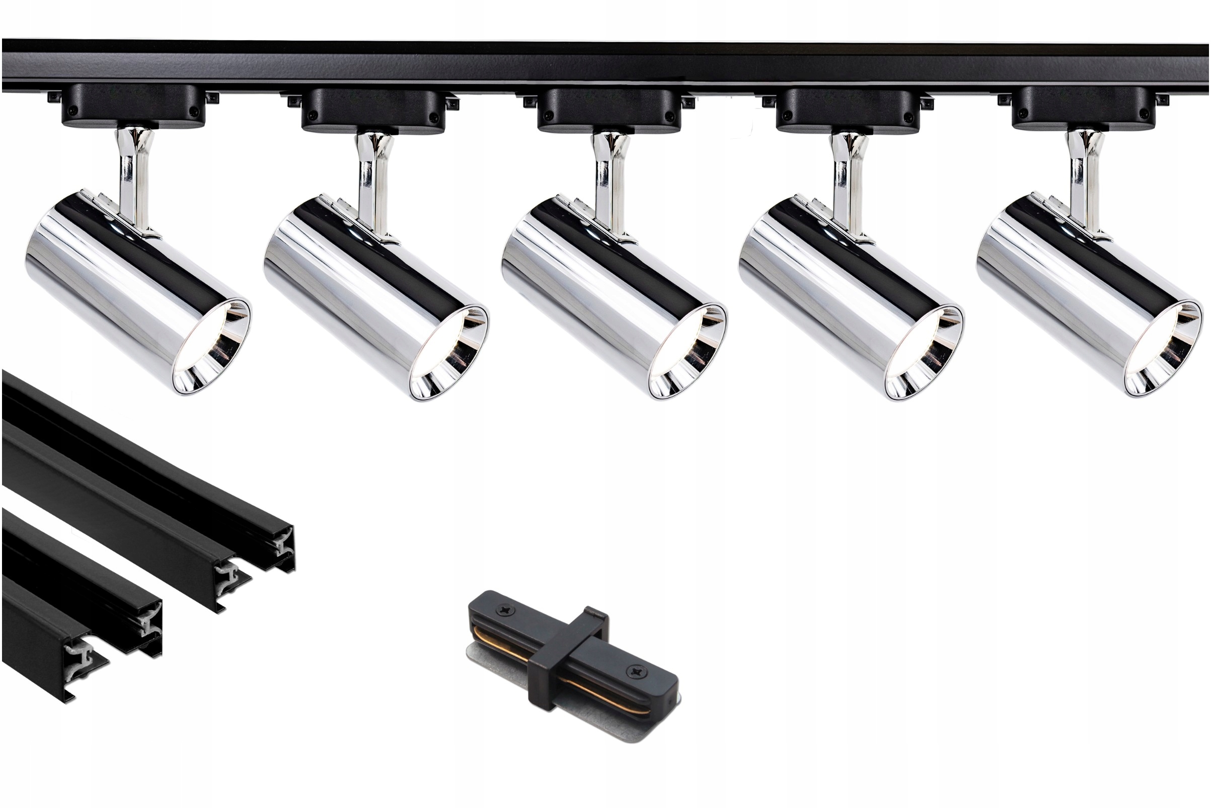 Комплект из 5 однофазных точечных светильников на лампочку GU10 с шиной питания 300 см