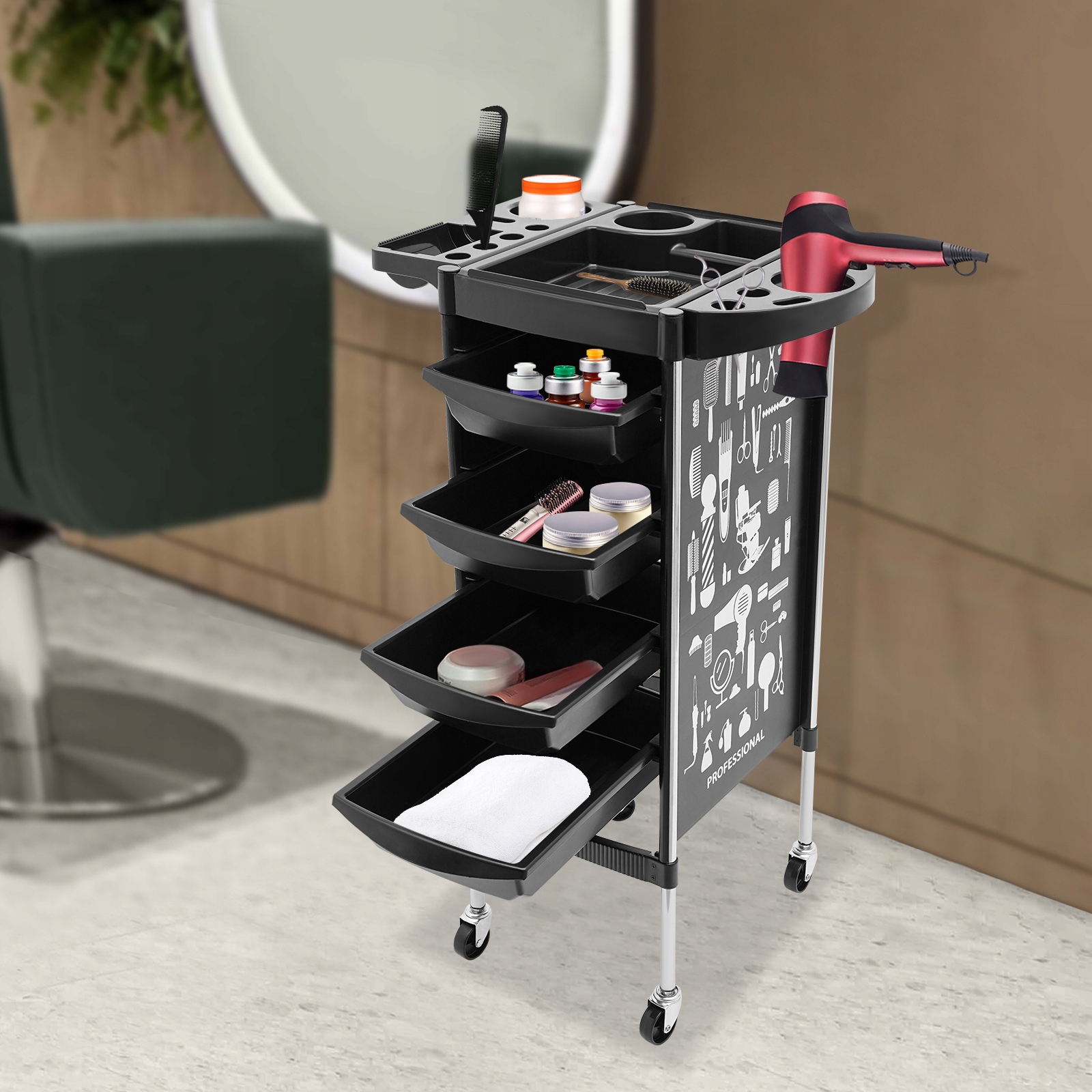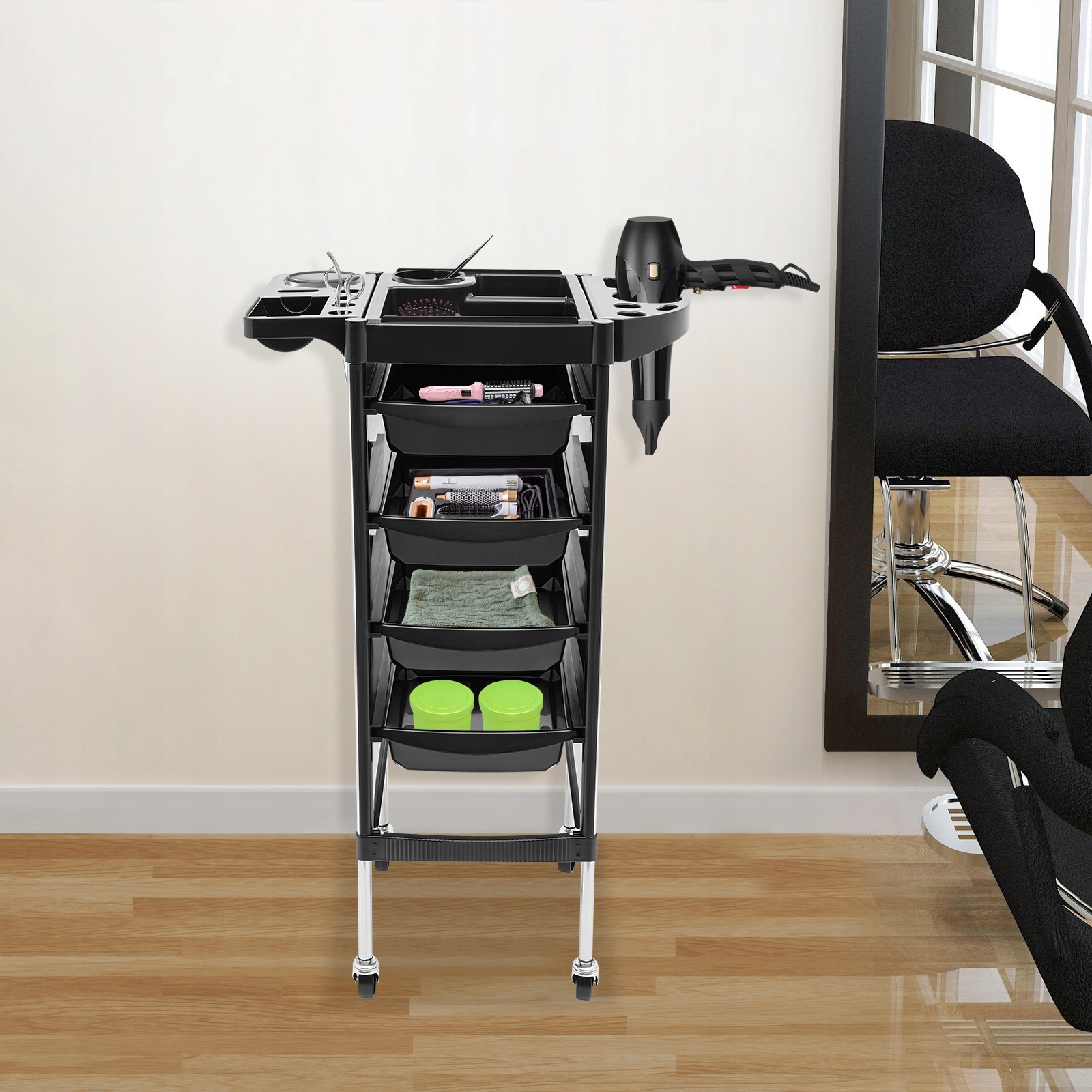 5-ярусная салонная тележка, тележка для хранения с держателями для фена