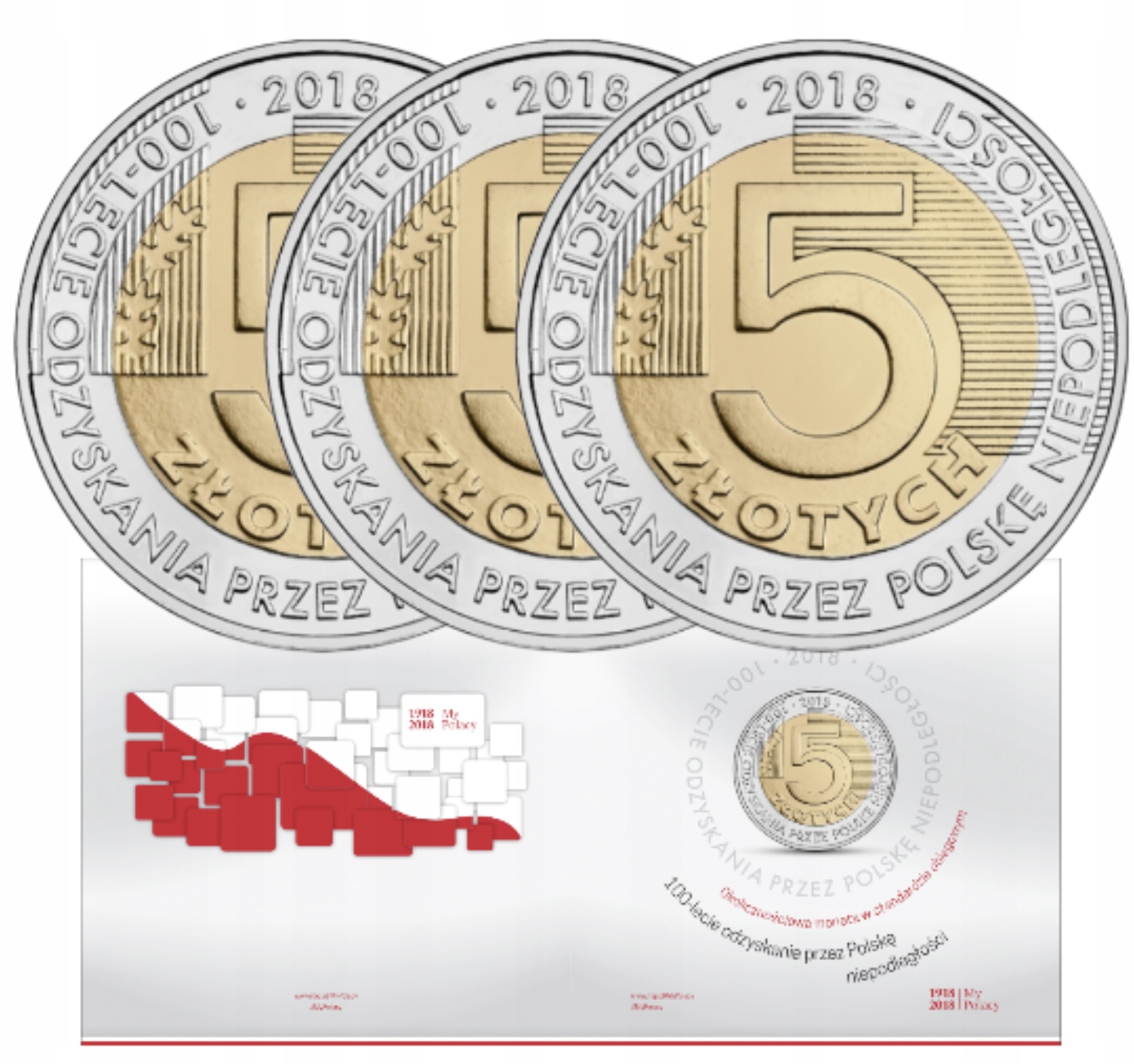 5 ZŁ НЕЗАВИСИМОСТЬ - 100 лет - 4 монеты + папка
