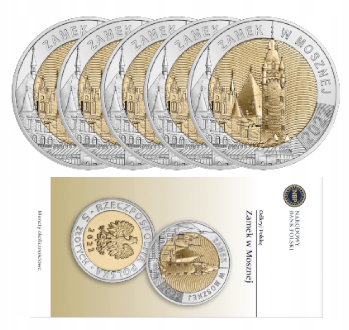 5X МОНЕТЫ 5 злотых Замок в Мошне