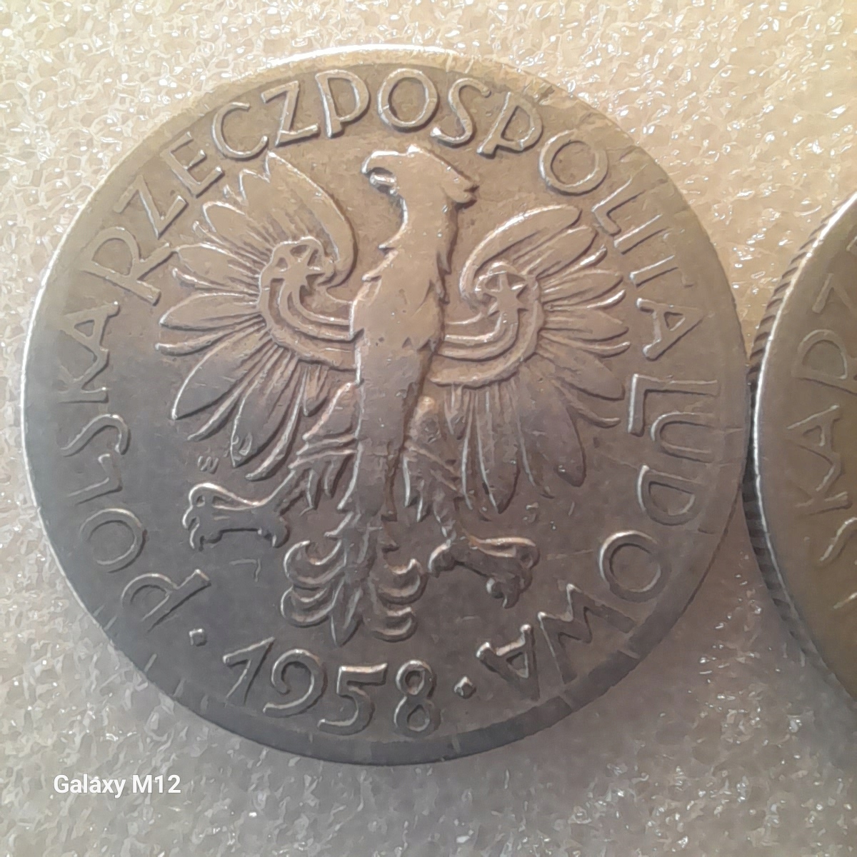 5 злотых РЫБАК, 1958 г., редкая, ценная, 2 монеты.
