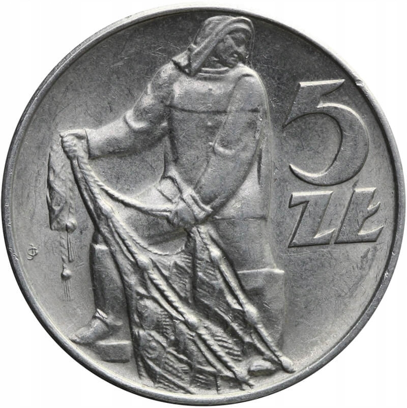 5 злотых, Рыбак, 1974 г., состояние 1-