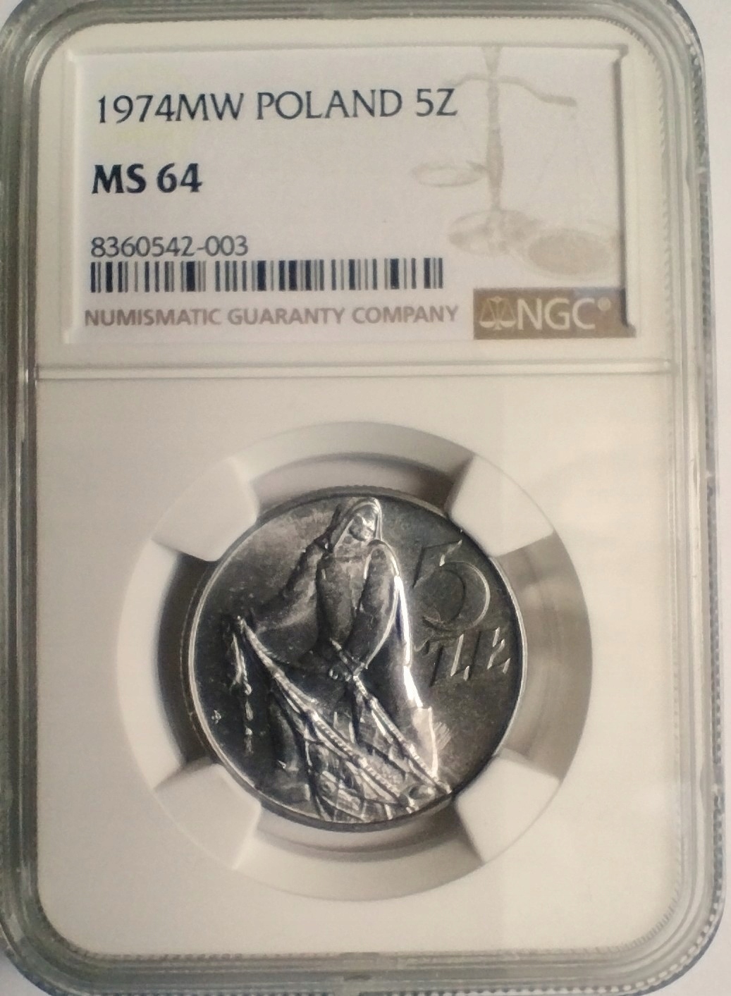 5 Zlotys 1974 Fisherman с травой NGC MS 64