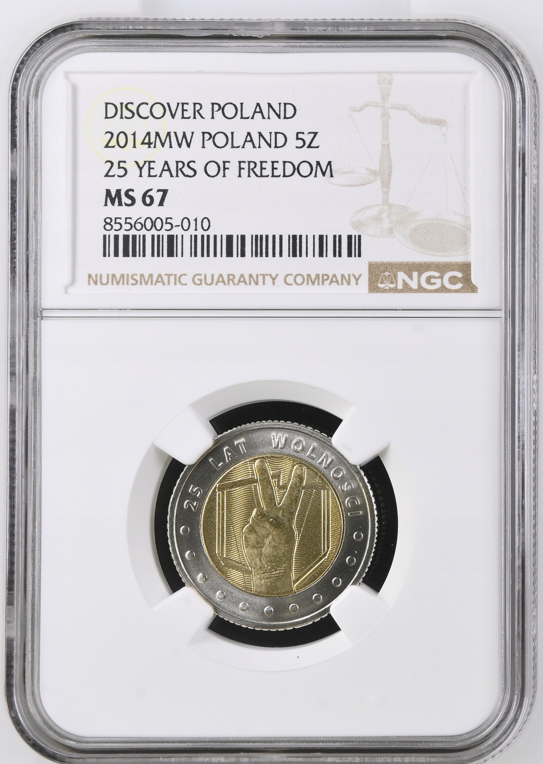 5 Zlotys Poland 2014 NGC MS 67 25 лет свободы