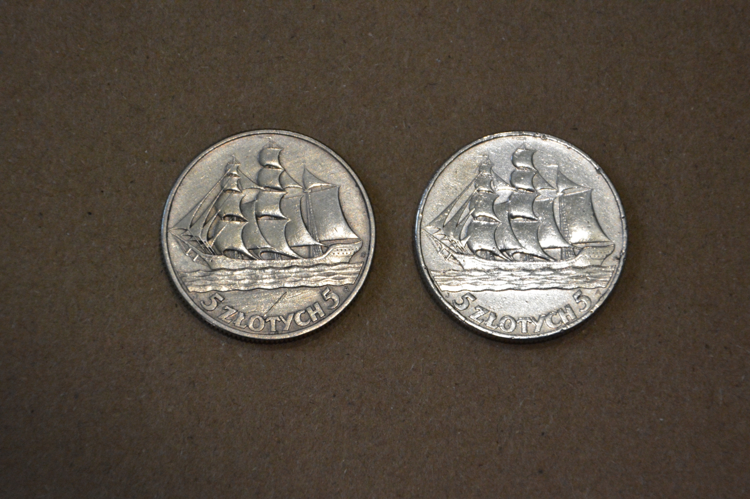 5 złotych x 2 sztuki 1936 Żaglowiec SREBRO