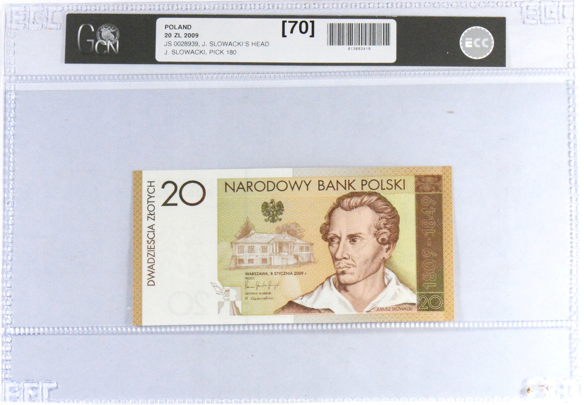 5. БАНКНОТА НОМІНАЛОМ 20 ЗЛОТИХ 2009 J.SŁOWACKI JS 0028939 РЕЙТИНГ GCN 70 2,10