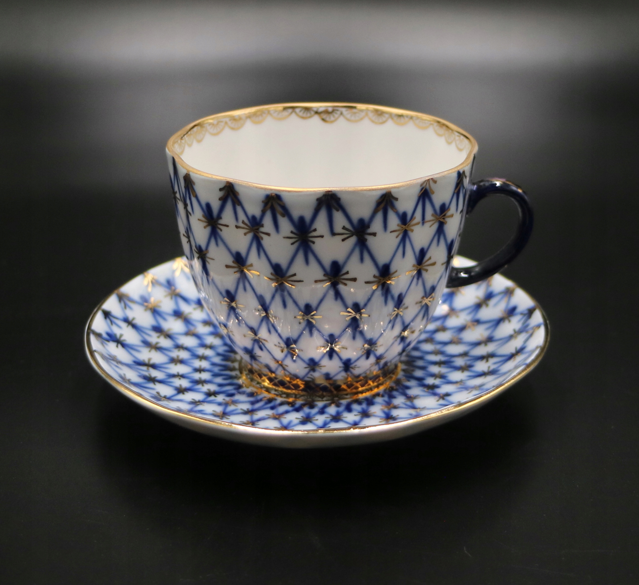wed 11. Фарфор, украшенный кобальтом и позолочкой.Очень хорошее условие поведения (точечная заводская завод, внутри чашки - см. Фотографию)