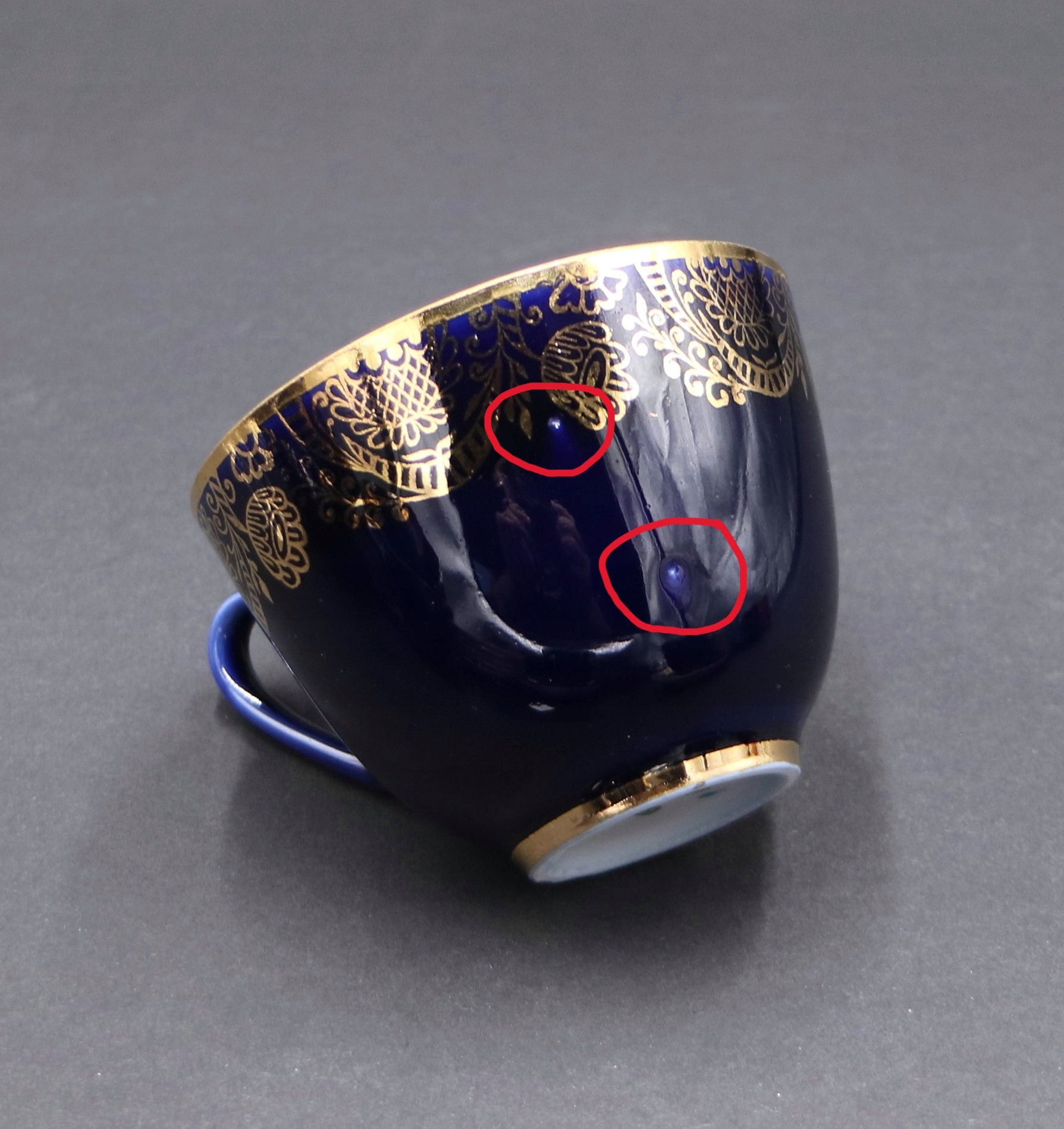 Состояние Очень хорошее поведение (два точечного завода на внешней стороне чашки, небольшие следы использования на основе, царапины на кобальте - см. Фотографии)