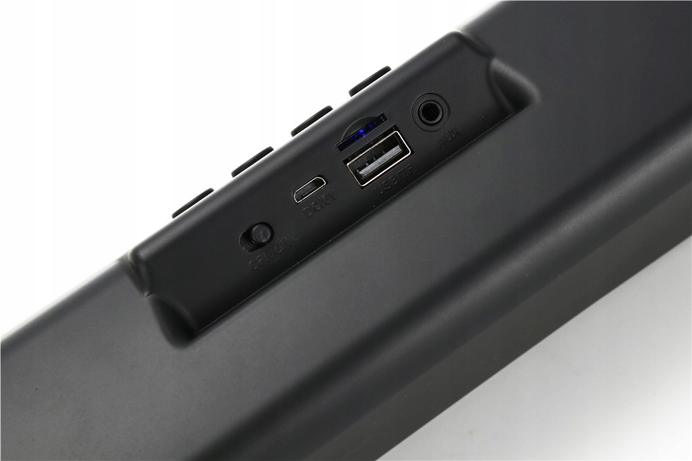 Панель управления расположена в верхней части громкоговорителя. Он включает в себя, среди прочего: кнопки изменения режима работы, управления громкостью или паузы. Вы сможете использовать звуковую панель для воспроизведения музыки без проводов. Благодаря Bluetooth 5.0 вы можете подключиться, например, к смартфону или планшету.