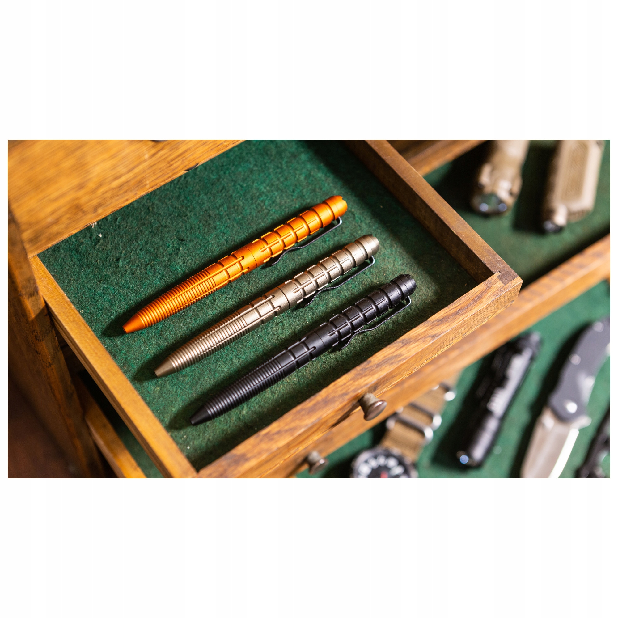 Тактическая ручка Kubotan — это одновременно ручка и инструмент самообороны. Цельная алюминиевая конструкция с ребристой текстурой, обеспечивающей надежный захват. В комплект входит сменная черная вставка.