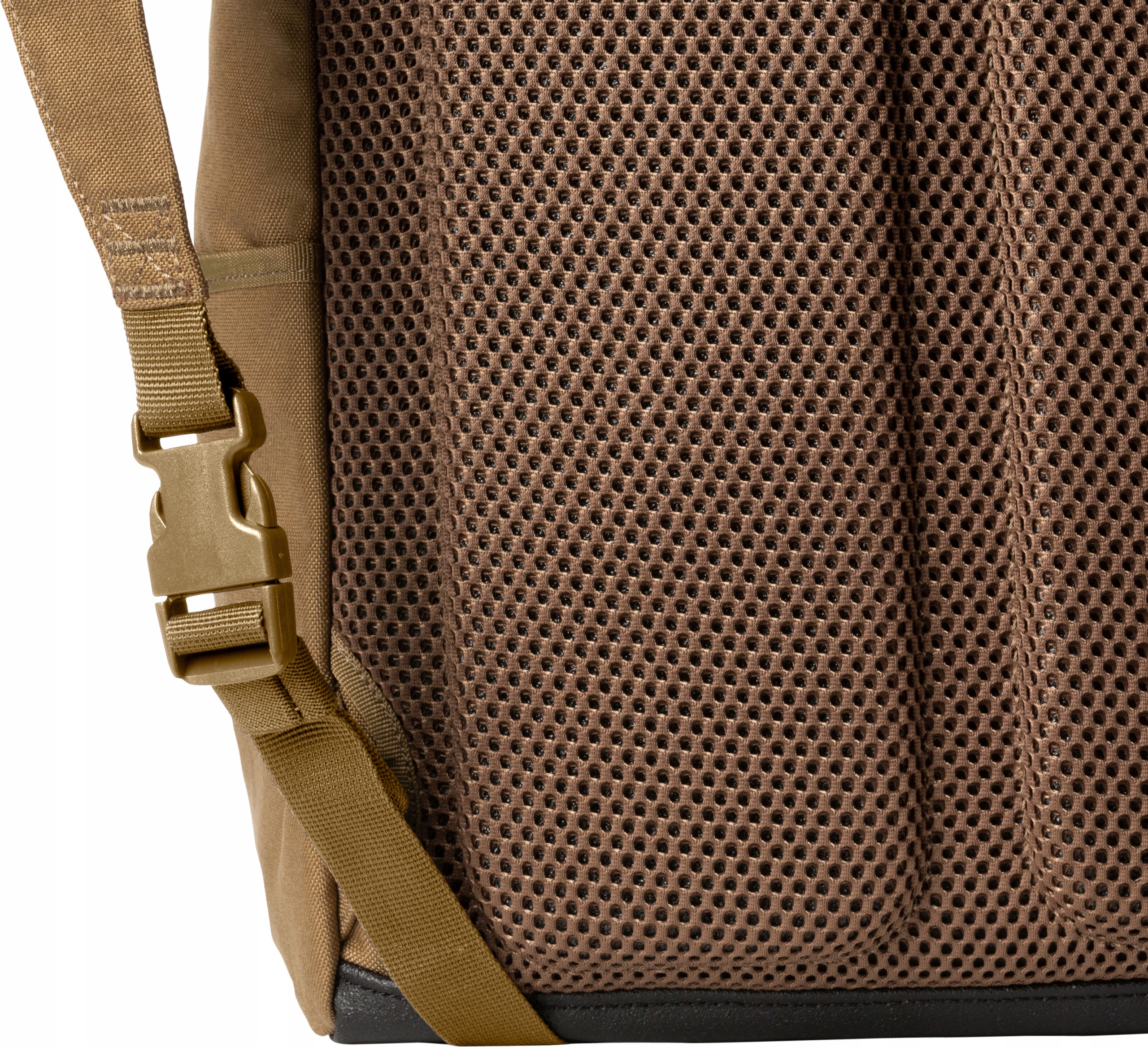 Низ рюкзака защищен двухслойной внутренней и внешней панелью из полиэстера 1000D.