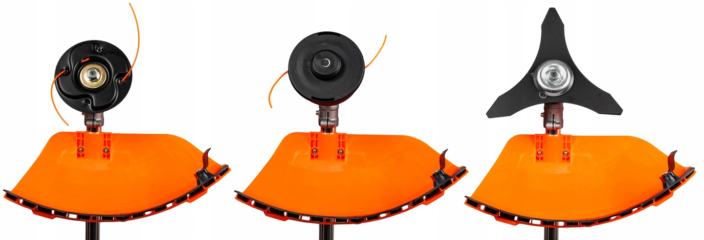 В комплект входят 3 режущих инструмента на выбор: триммер, струна и диск, благодаря чему диапазон возможностей использования косы очень широк: от подравнивания краев газона до удаления более крупных кустов.