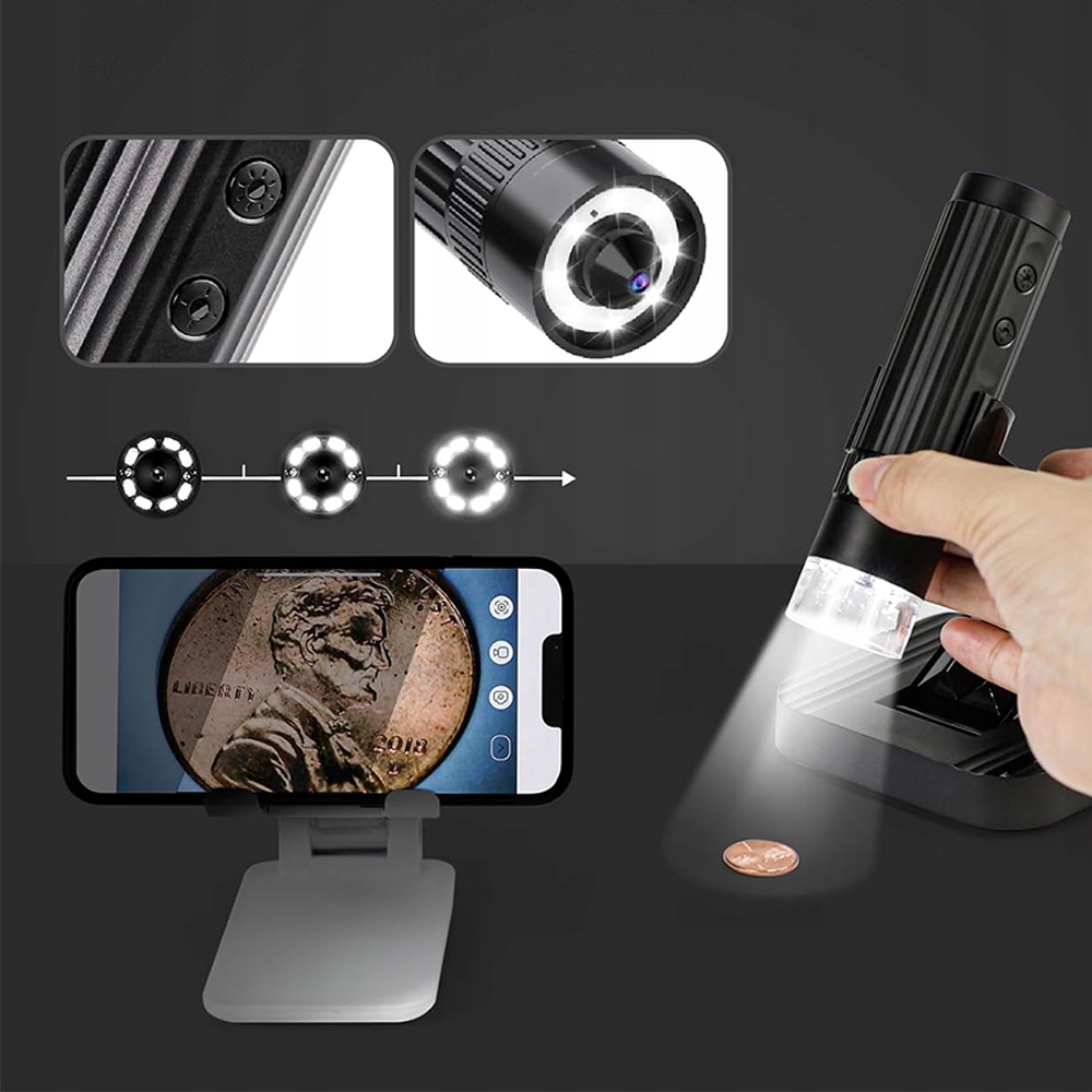 ЦИФРОВОЙ МИКРОСКОП 50-1000X ДЛЯ НАБЛЮДЕНИЯ МОНЕТ, МАРОК И WIFI КОЖИ