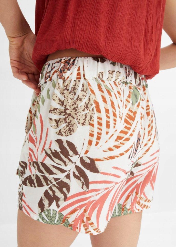 50 _КОРОТКИЕ ШОРТЫ ЖЕНСКИЕ ВИСКОЗНЫЕ, БЕЛЫЕ С РАСТИТЕЛЬНЫМ УЗОРОМ