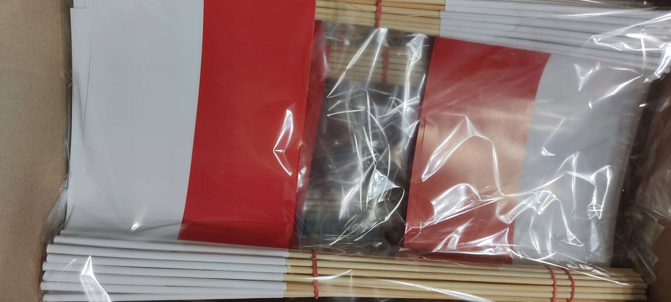 Долговечность наших флагов повышается за счет упаковки 25 штук в эстетичную целлофановую пленку.