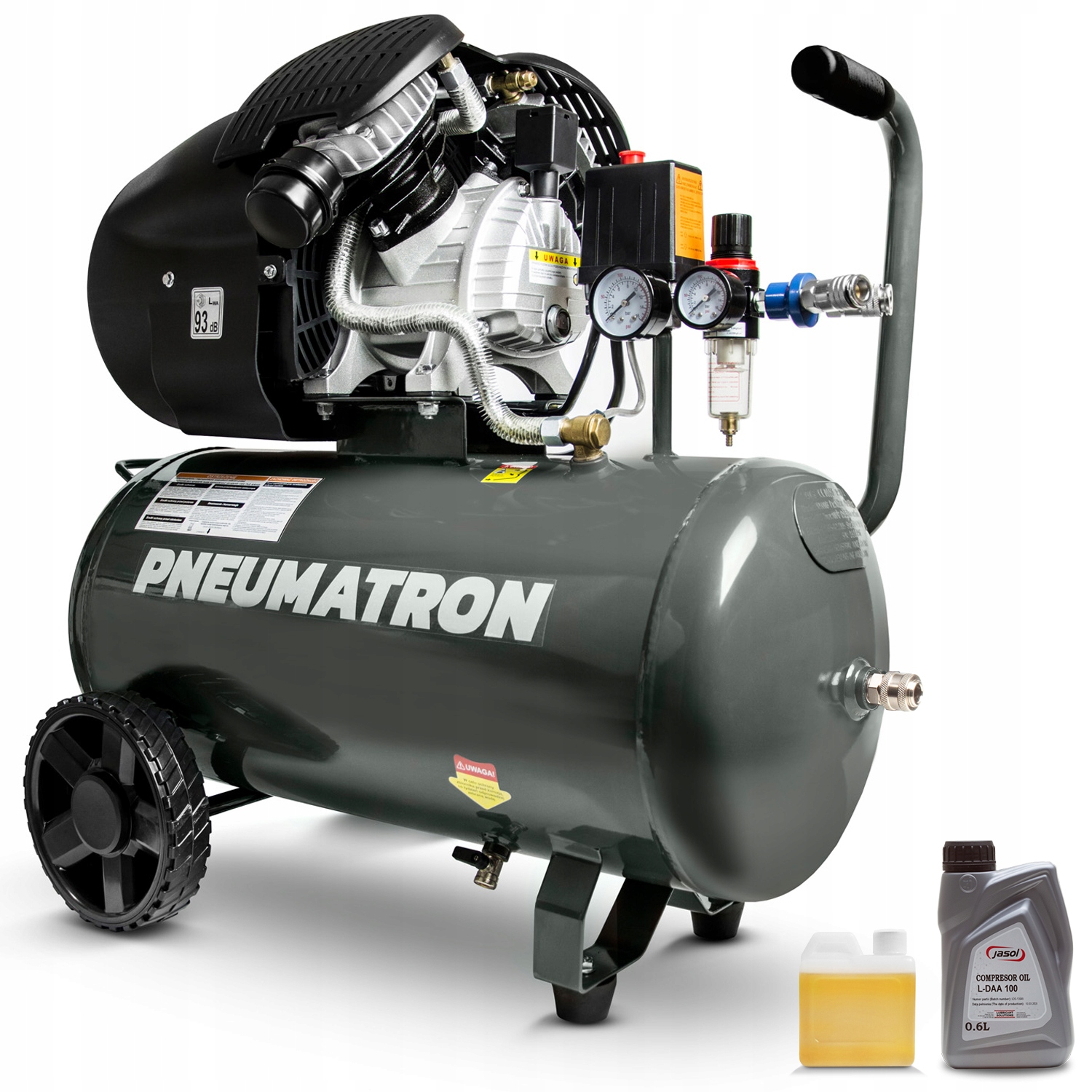 - Бесплатно: Бутылка масла для первой заливки и бутыль специализированного компрессорного масла 0,6 л (замена после первых 50 часов работы, после заливки масла для первого запуска)