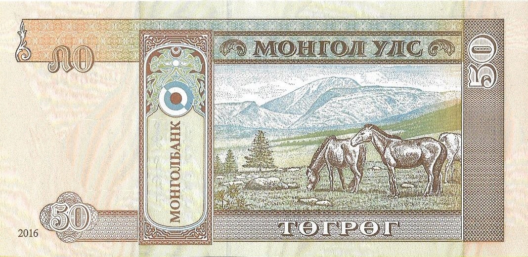 - Номинальная стоимость: 50 ₮ - Монгольский тогрёг