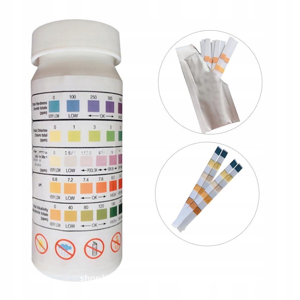 Особенность: 1. 1,5 Вт 1 - Каждый испытательный ремень может выполнять фразу pH, щелочную щелочность, твердость, свободный хлор и циануриновая кислота и т. Д. Она может предоставить диагностированную информацию, которая позволяет вам поддерживать кристально чистый бассейн, спа -салон или гидромассаж с гидромассией.