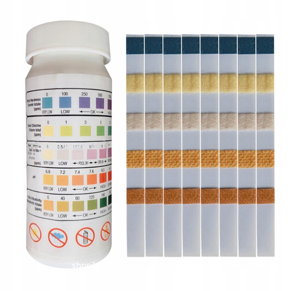 4. 4. Разумный дизайн - благодаря чистым и пятнам красочных подкрещиков, наши тестовые полоски расскажут вам все, что вам нужно знать о химических веществах в вашем бассейне. Он содержит многоразовый компаратор цветовой палитры, который расположен на стороне бутылки. Он подходит для поддержания здорового химического здоровья в бассейне или спа.