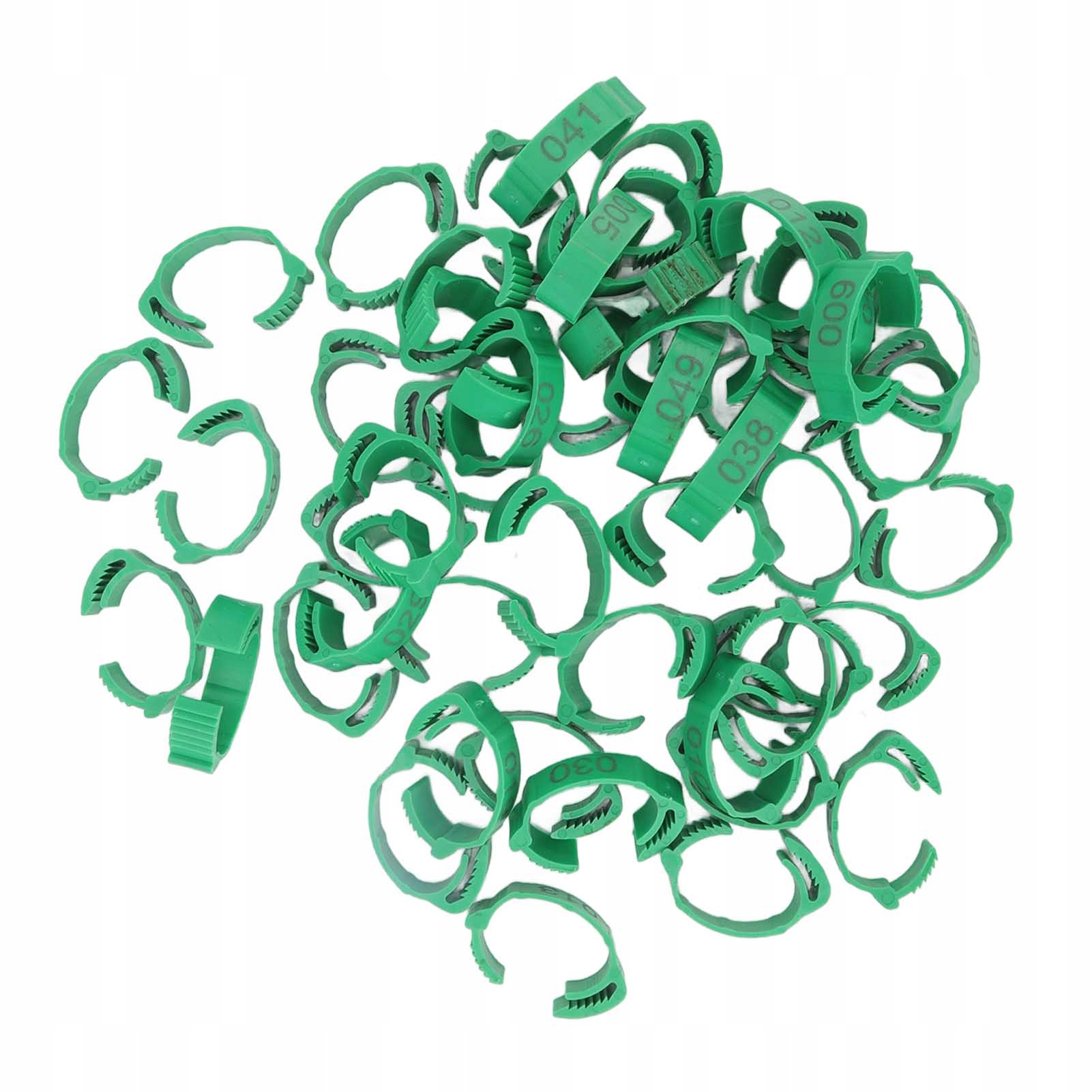 1. Пронумерованные видимые кольца: идентификационные полосы курицы зеленые и пронумерованы от 1 до 50.