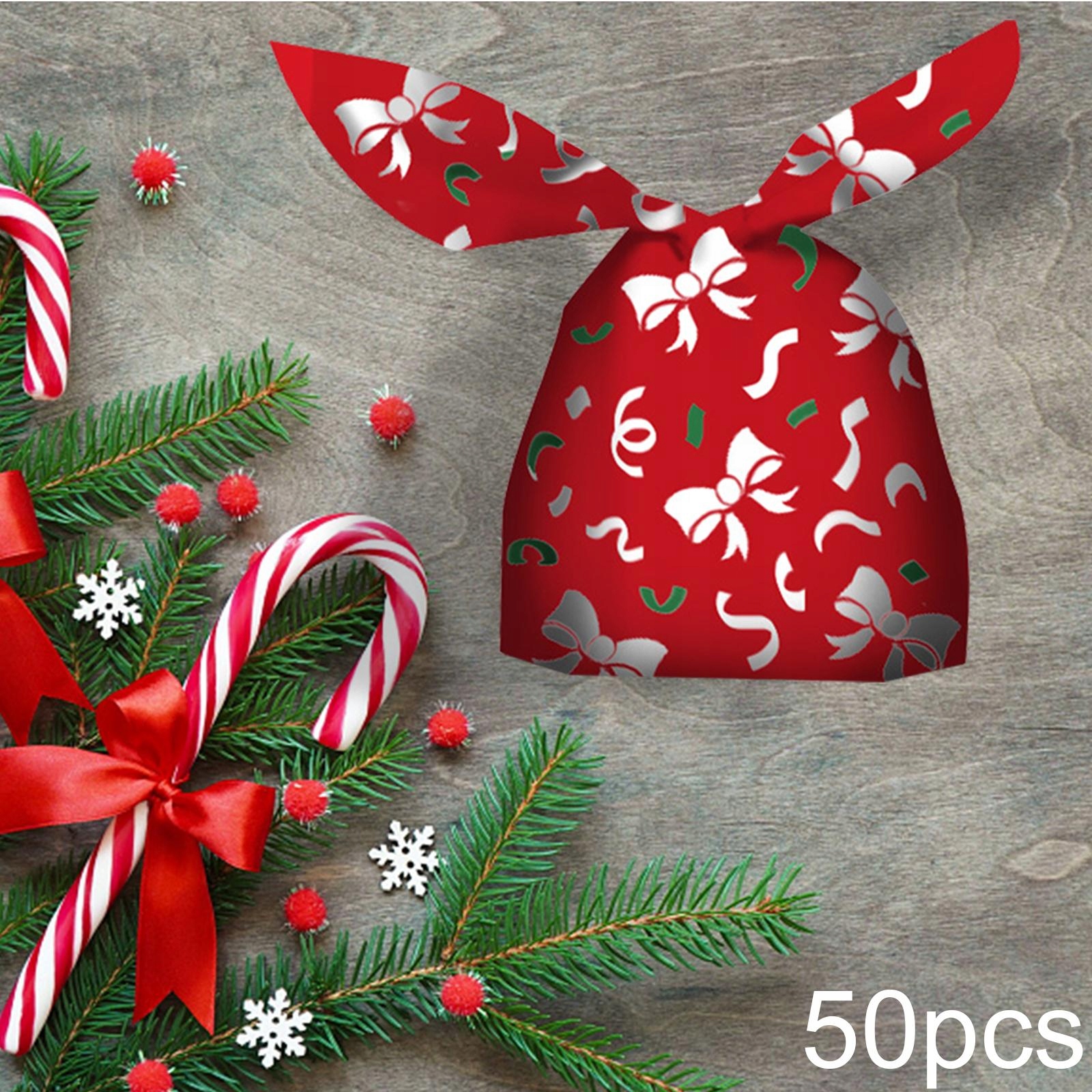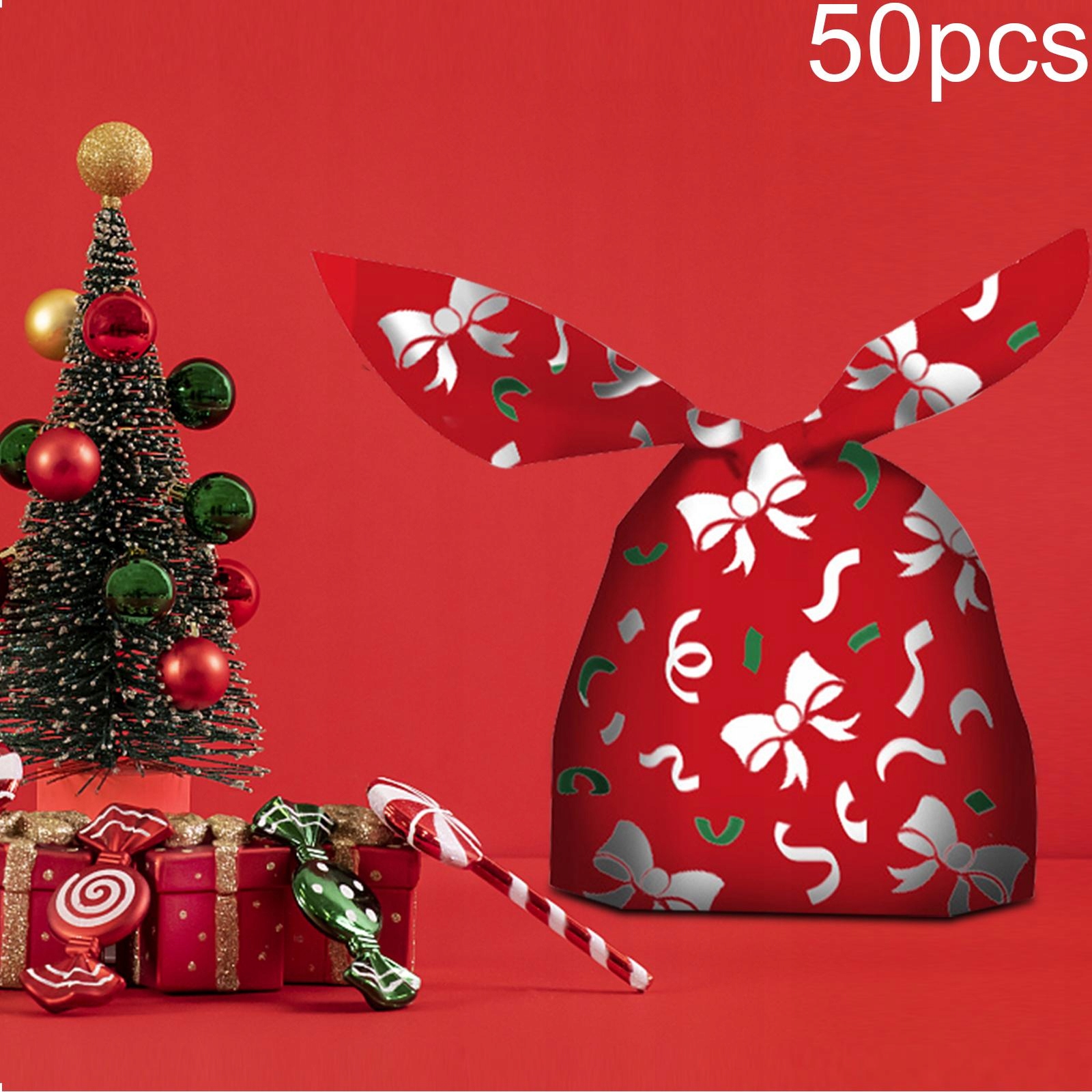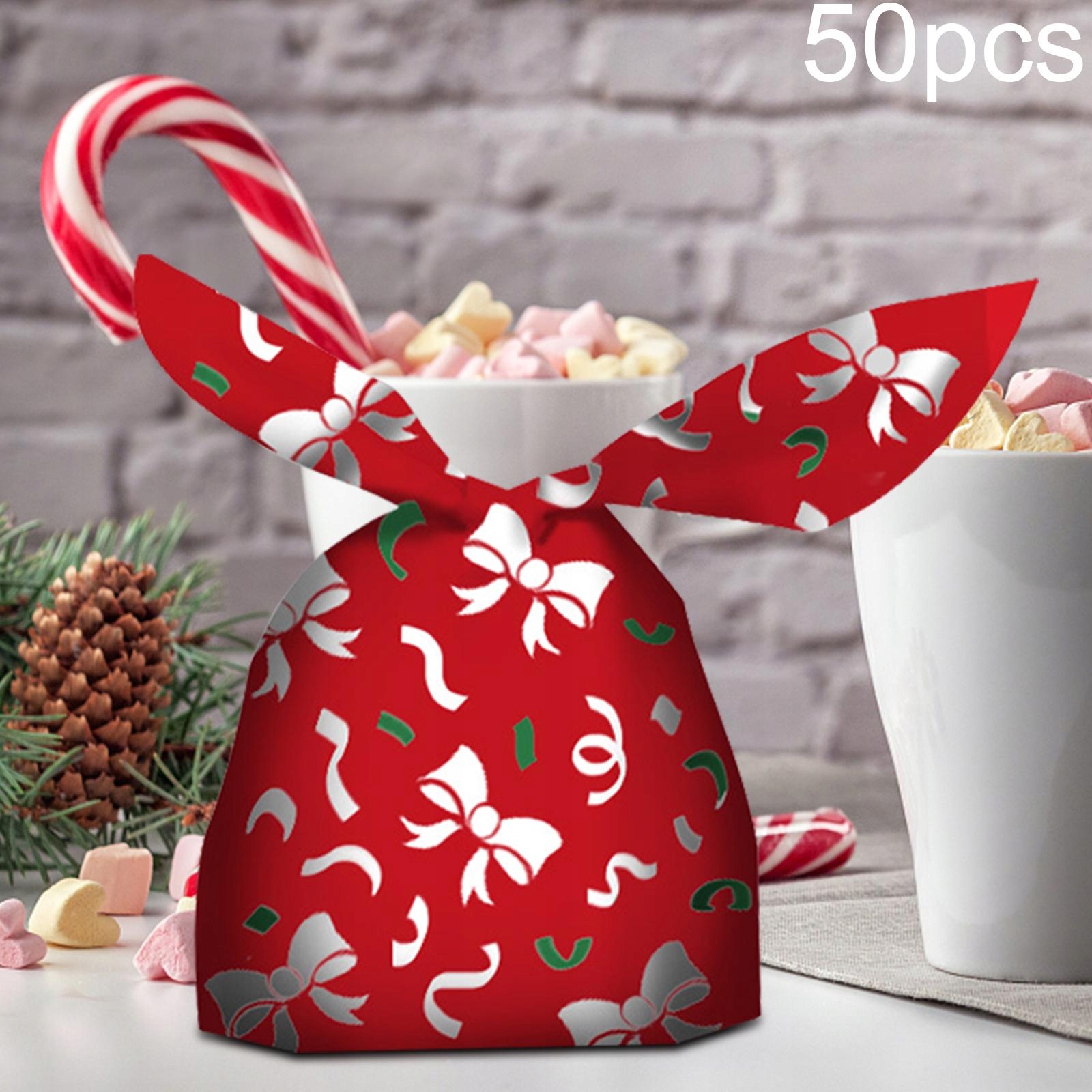 50 шт. Різдвяні пакетики для цукерок, мішечок для закусок для печива, весільні цукерки, бантик, червоний