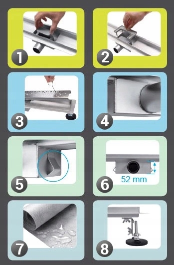 - extraslim - сделано из нержавеющей стали AISI 304 очень Низкий сифон , что облегчает установку;